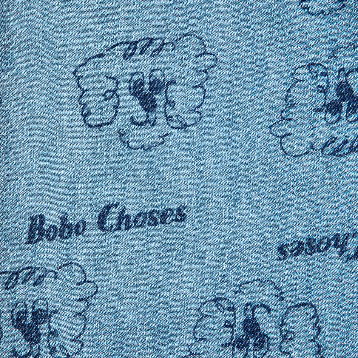 Pickles The Dog All Over Light Denim Pants by Bobo Choses. Prussian blue denim trousers designed with an elasticated waistband, straight fit, long length, a patch pocket and seam pockets.