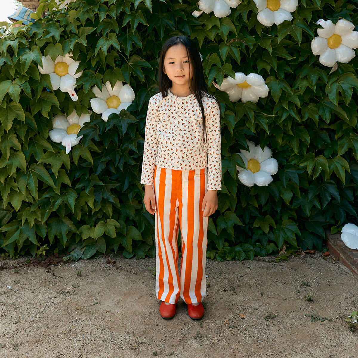 Stripes Twill Jeans in Summer Red by Tinycottons