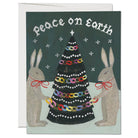 Peace Rabbits Christmas greetings card by Red Cap Cards. Features an illustration by Emily Isabella. Printed in the USA on heavyweight card stock. Blank inside with white envelope.
