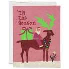 Santa & Reindeer Christmas greetings card by Red Cap Cards. Features an illustration by Emily Isabella. Printed in the USA on heavyweight card stock. Blank inside with white envelope.