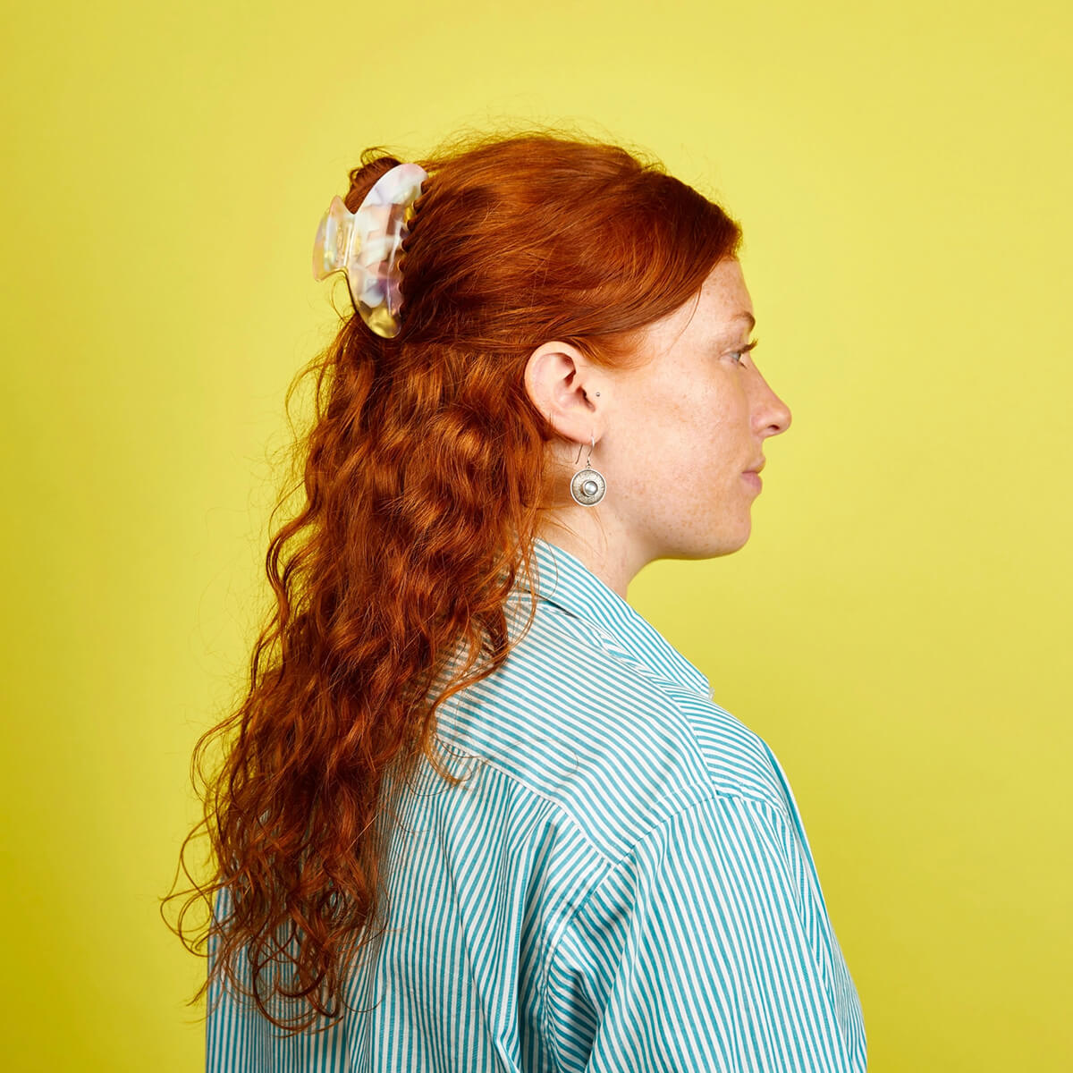 Baby Dolly Hair Claw by Chunks. This medium-sized hair claw is super versatile and works for all hair types and textures. Use for full twists or buns on fine to medium hair. Use for half updo's with medium to thick hair. .