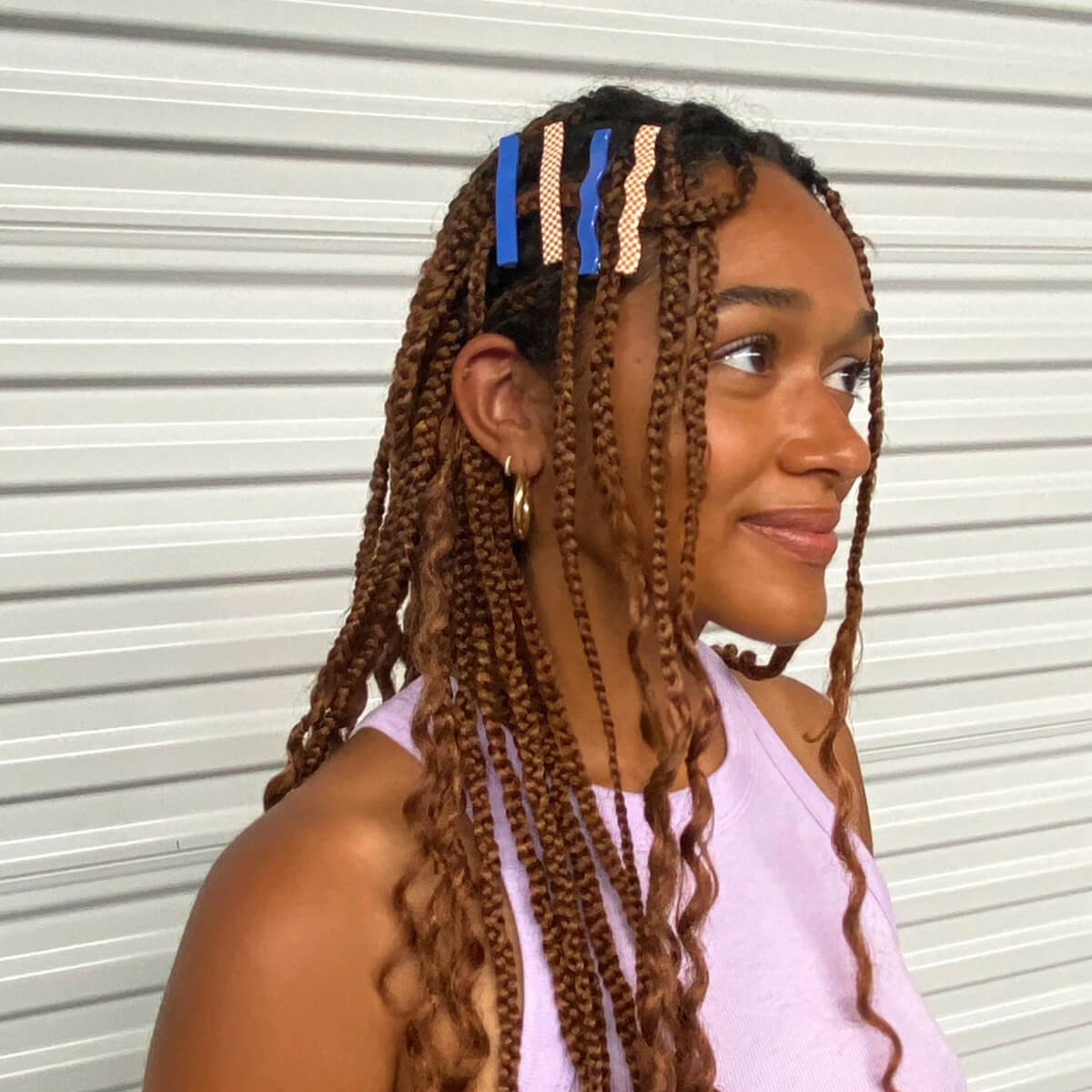 Hair Slides by Chunks. These slide-style barrettes have no clasp. Just pry them open a bit and slide them on for a pop of color. Perfect for taming bangs and flyaways.