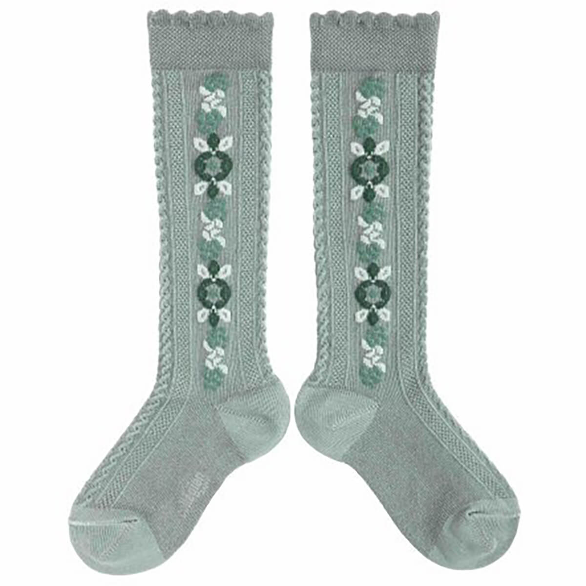 Dalia Jacquard Flower Knee High Socks in Aigue Marine by Collegien