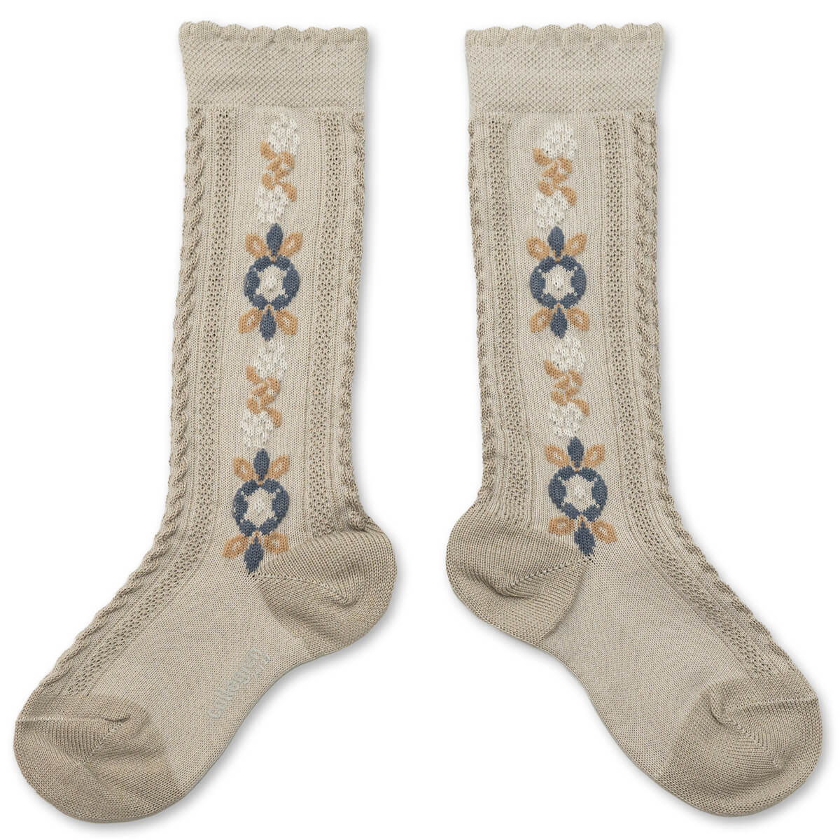 Dalia Jacquard Flower Knee High Socks in Gris Perle by Collegien