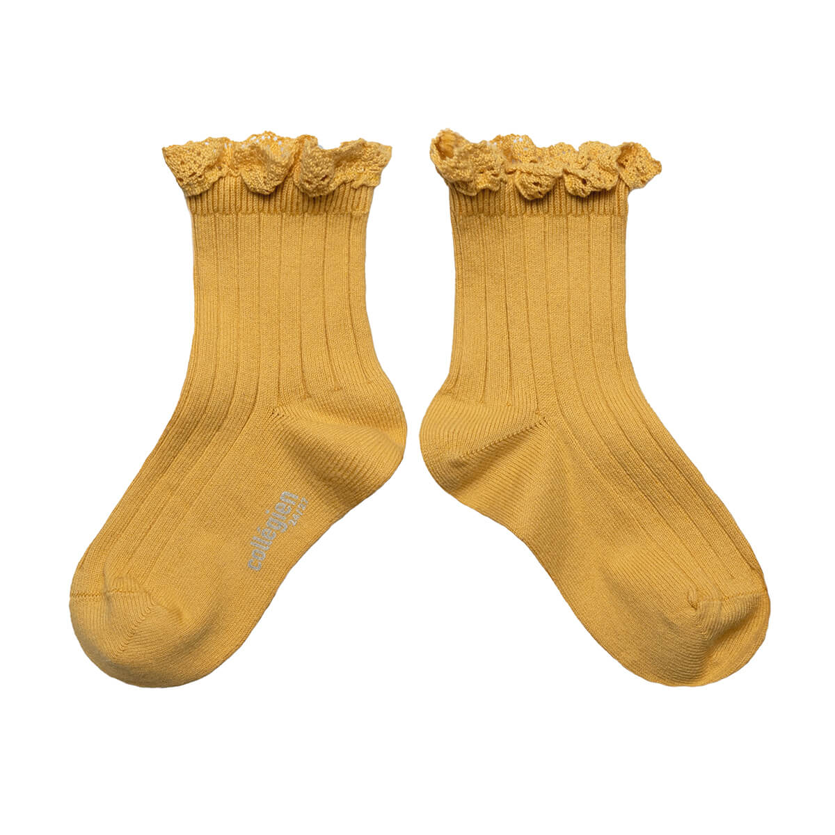 Lili Lace Trim Ribbed Ankle Socks in Camomille by Collegien