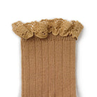 Lili Lace Trim Ribbed Ankle Socks in Caramel Au Buerre Salé by Collegien