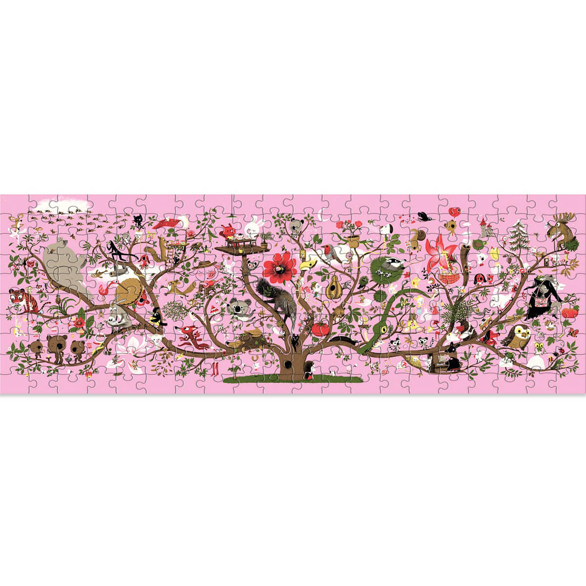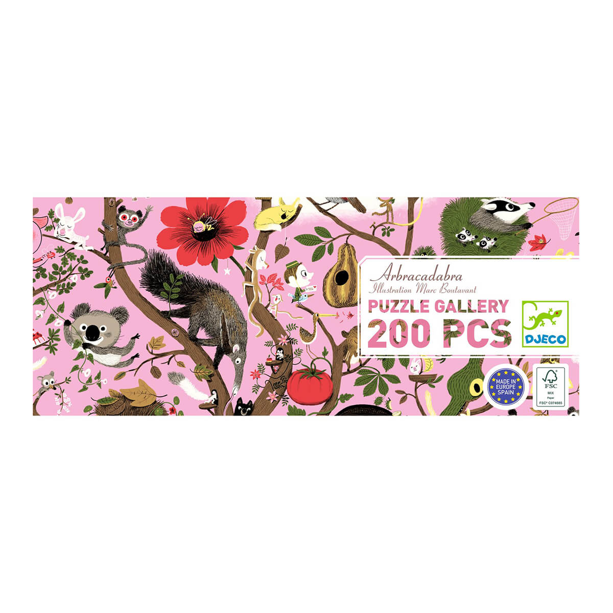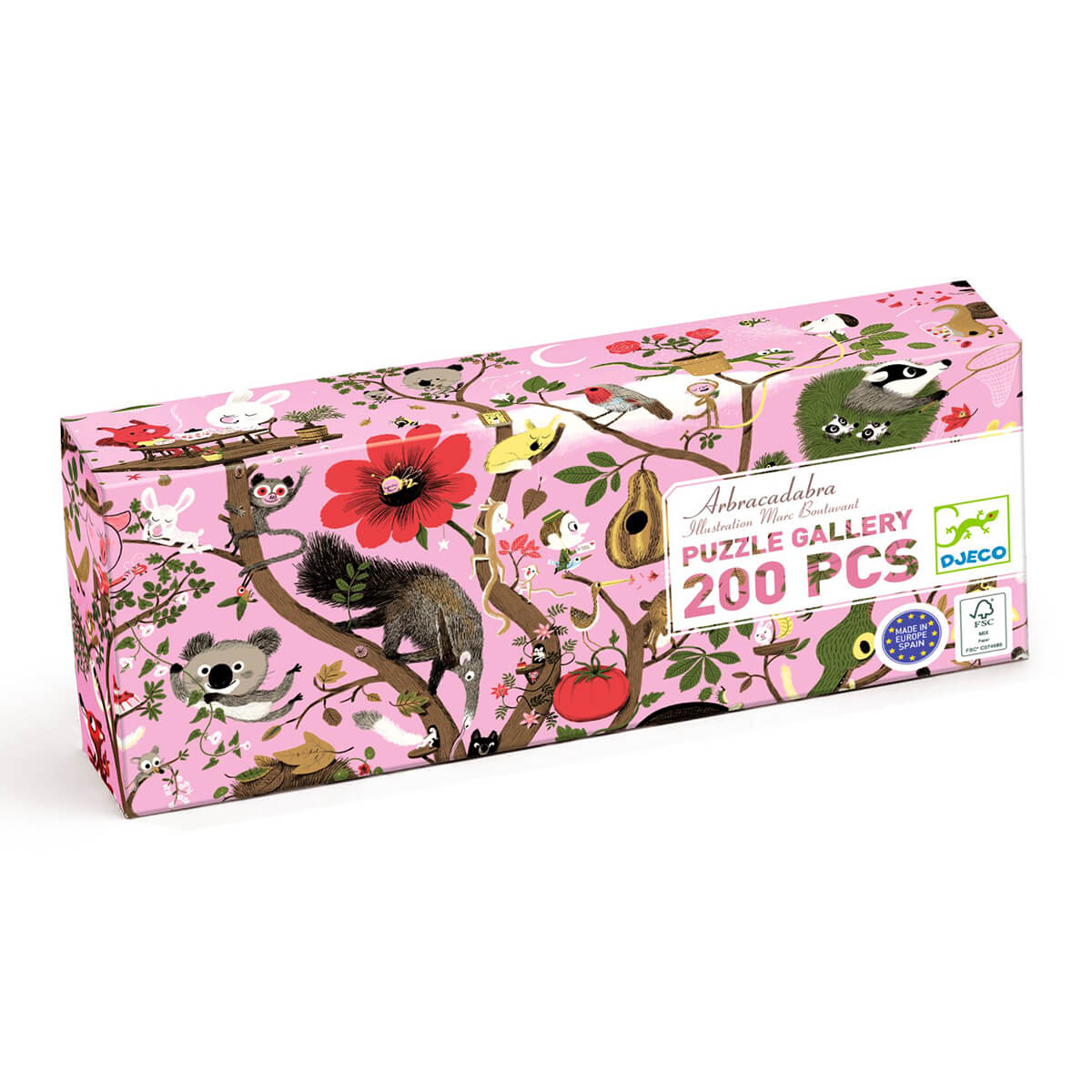 Arbracadabra 200 Piece Puzzle by Djeco. Arbracadabra is a 200-piece puzzle gallery where lots of little scenes are balanced in a tree, as if by magic! Our illustrators went wild with an all-new, super long format! A fun and innovative way of teaching children about painting.