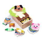 Arbramix wooden puzzle box by Djeco. Create 6 colourful animals in the relief of the box lid, then store them all in the box afterwards. Includes 18 wooden pieces.