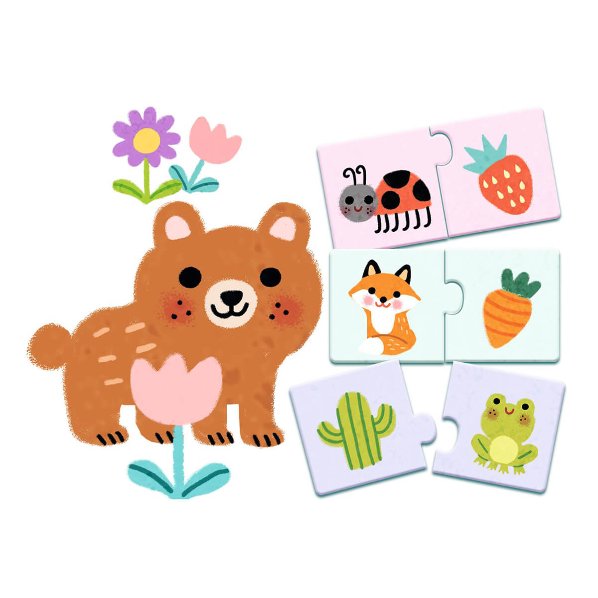 Colours Puzzle Duo by Djeco. The Colours Puzzle Duo is an educational puzzle to help children learn about colours. Children match objects and animals of the same color. Suitable for ages 2 and up.