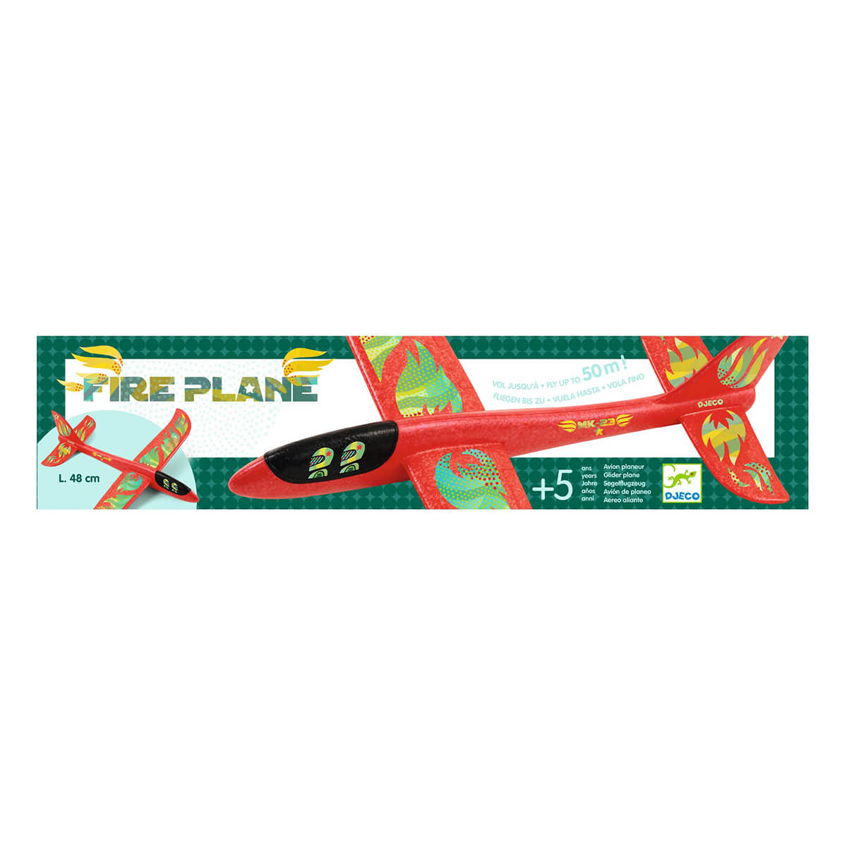 Fire Plane Glider by Djeco. Fire Plane is a large glider plane to assemble and decorate with stickers to transform it into a "fire plane." It will easily fly very far, without damage, thanks to its expanded foam composition, ideal for outdoor activities.