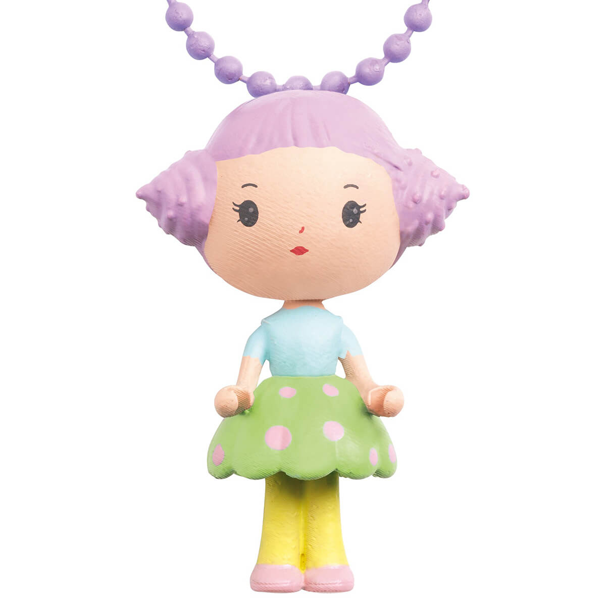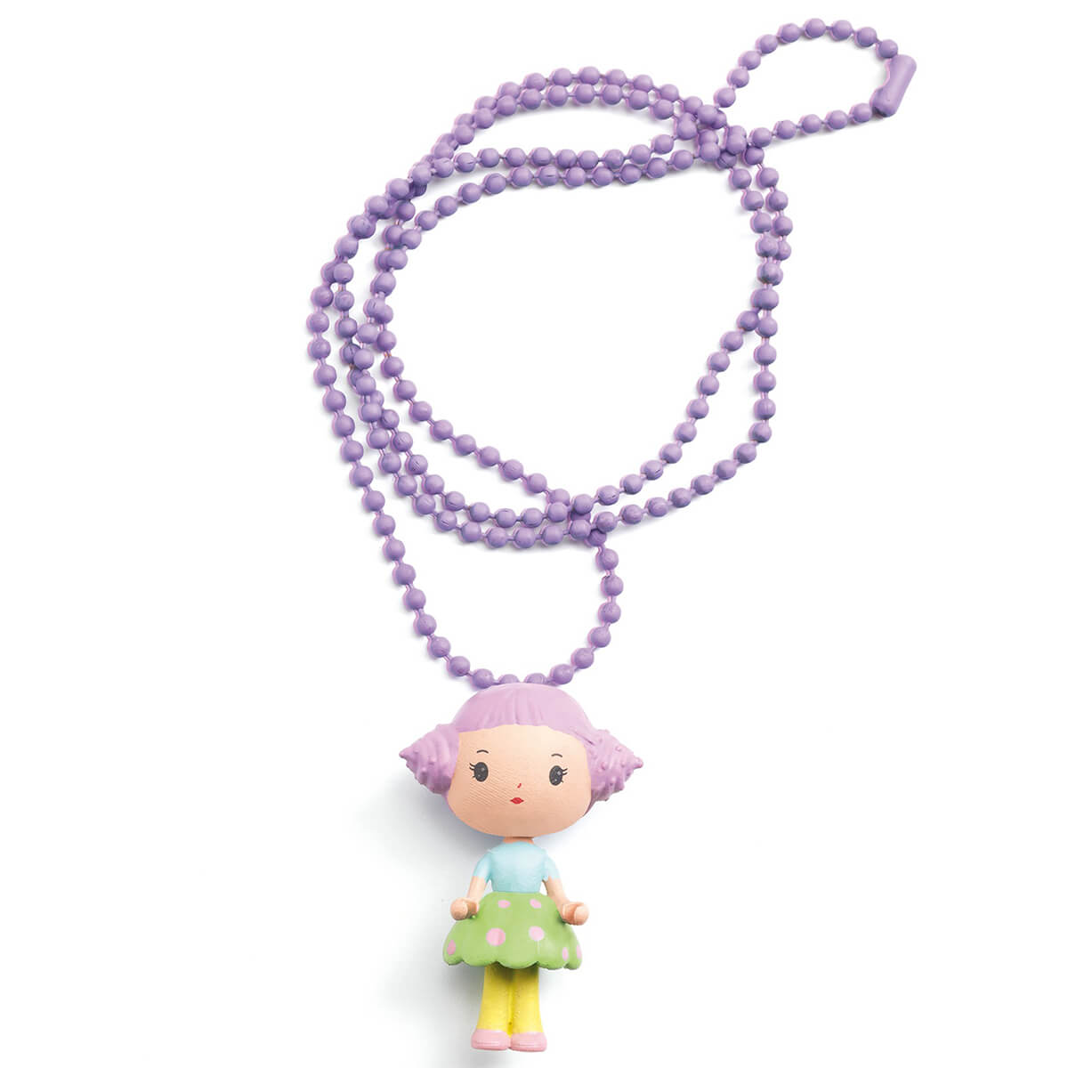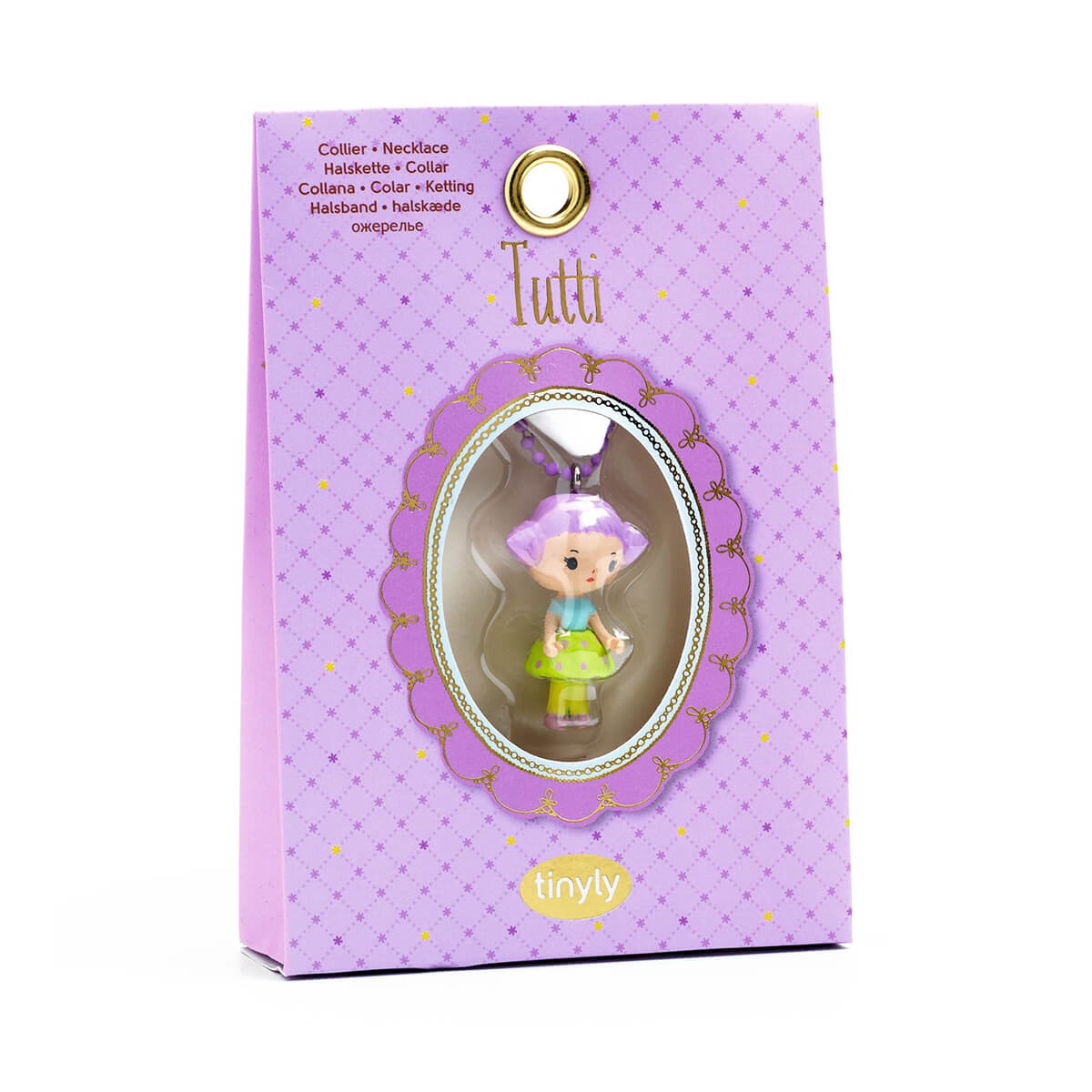 Tinyly Tutti Charm Necklace by Djeco. A necklace with a pendant featuring the finely sculpted Tinyly Tutti figurine on a colourful adjustable metal chain with a clasp. Comes in a pretty printed pouch and a perfect little gift for someone special.