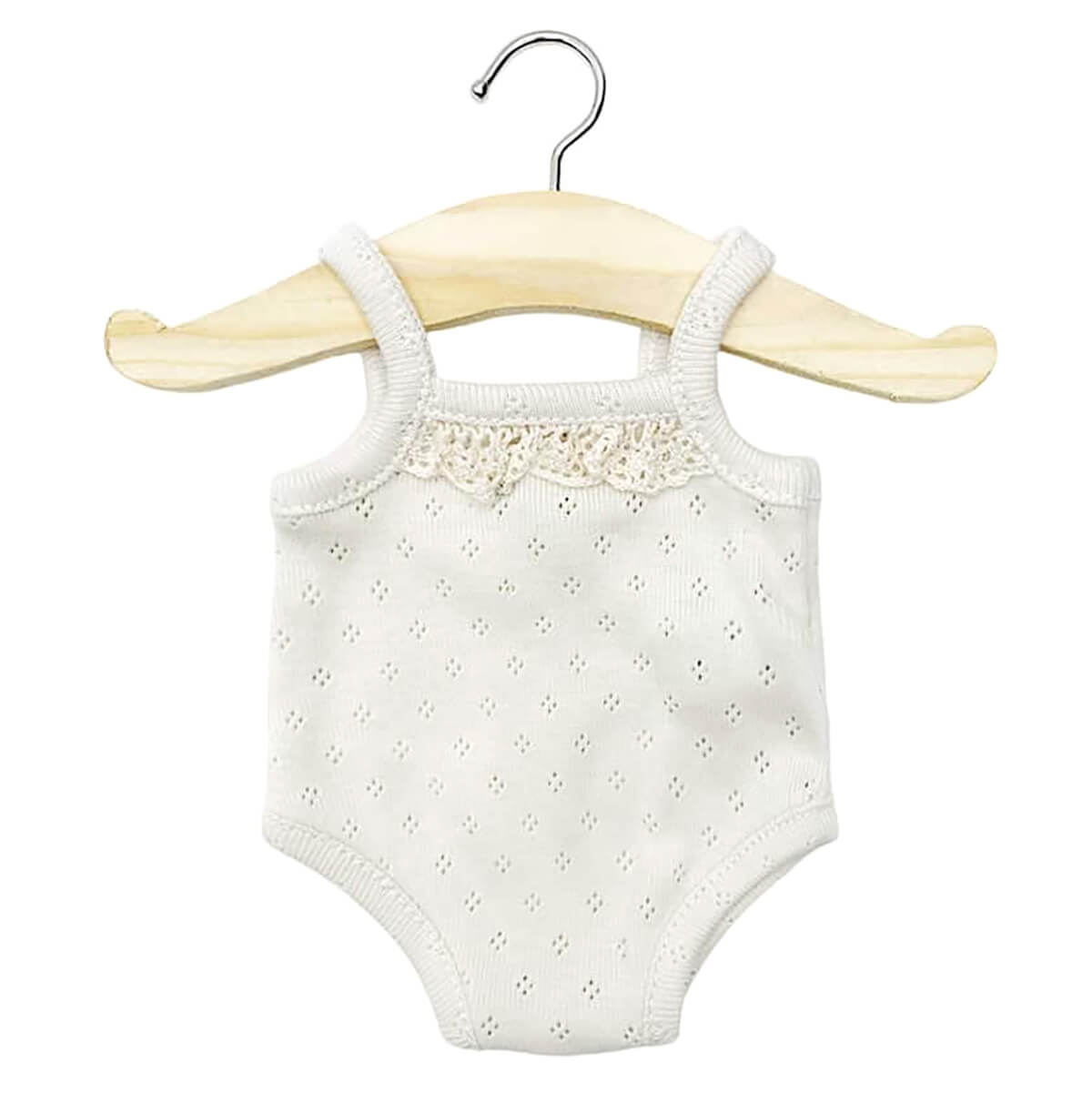 Lace trim pointelle sleeveless bodysuit by Minikane. Beautiful handmade doll's bodysuit in pointelle cotton material with lace detail. Fits the Paola Reina 34cm Gordi baby dolls.
