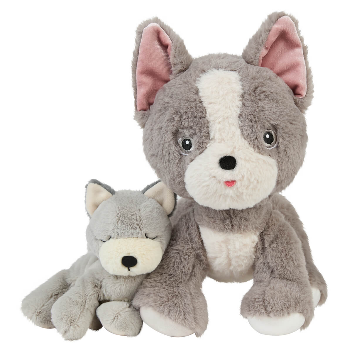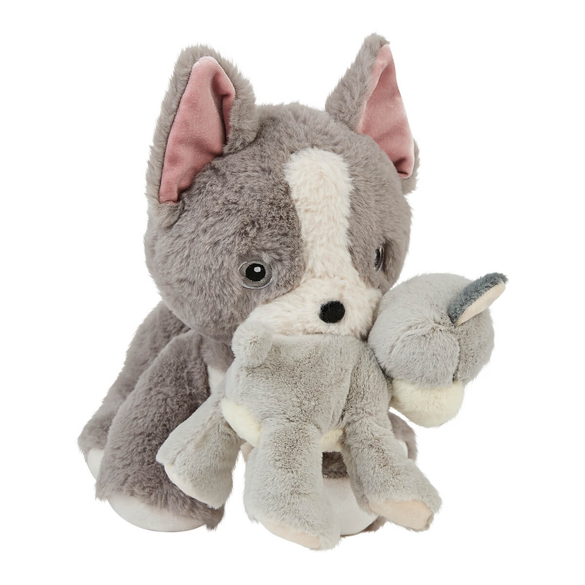 Binky Puppy Banjo Doll by Olli Ella. Meet Binky Puppy Banjo, the shaggy, huggable companion that’s always ready for an adventure! Banjo’s soft, shaggy plush fur is perfect for snuggles, and the gently weighted, posable body makes Banjo the perfect playful pal. With just as much cuteness and playfulness as our Original Dinkum Dogs the Dinkum Puppies are their smaller bffs, ready to adventure with your little one anywhere and everywhere! With a magnetic mouth that holds its dummy, and a magnetized neck, Banjo can be carried by the Dinkum Dog wherever your little one’s imagination takes them.