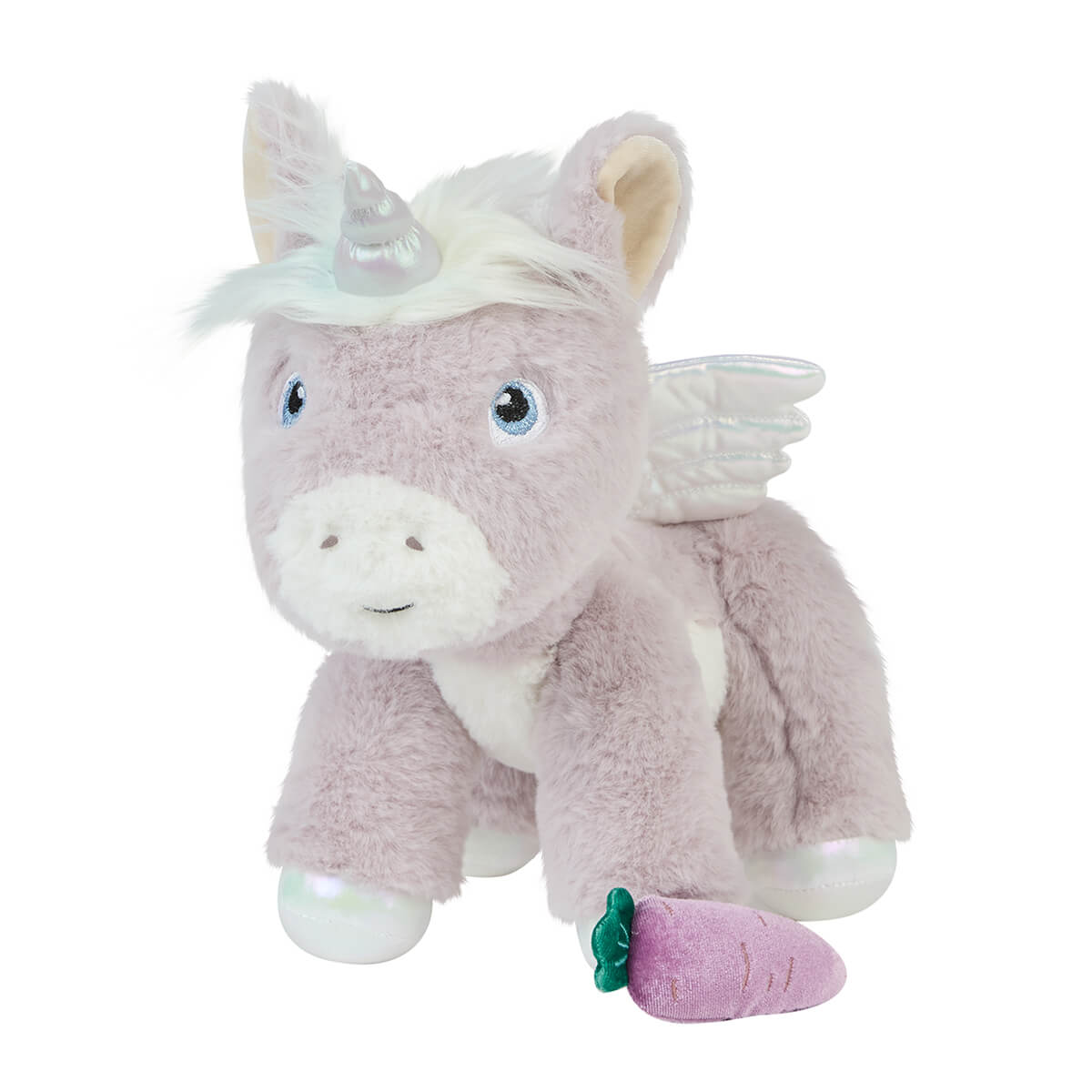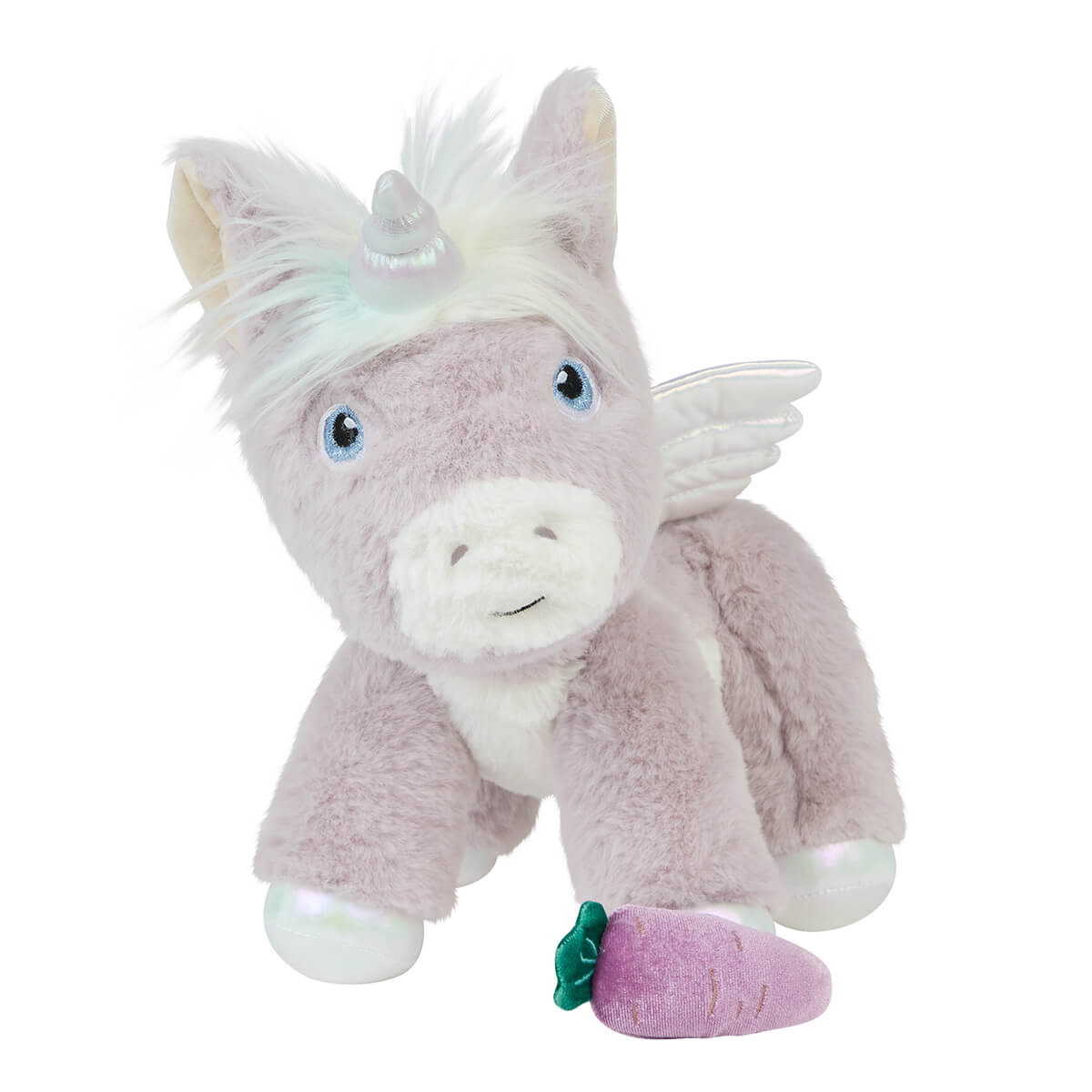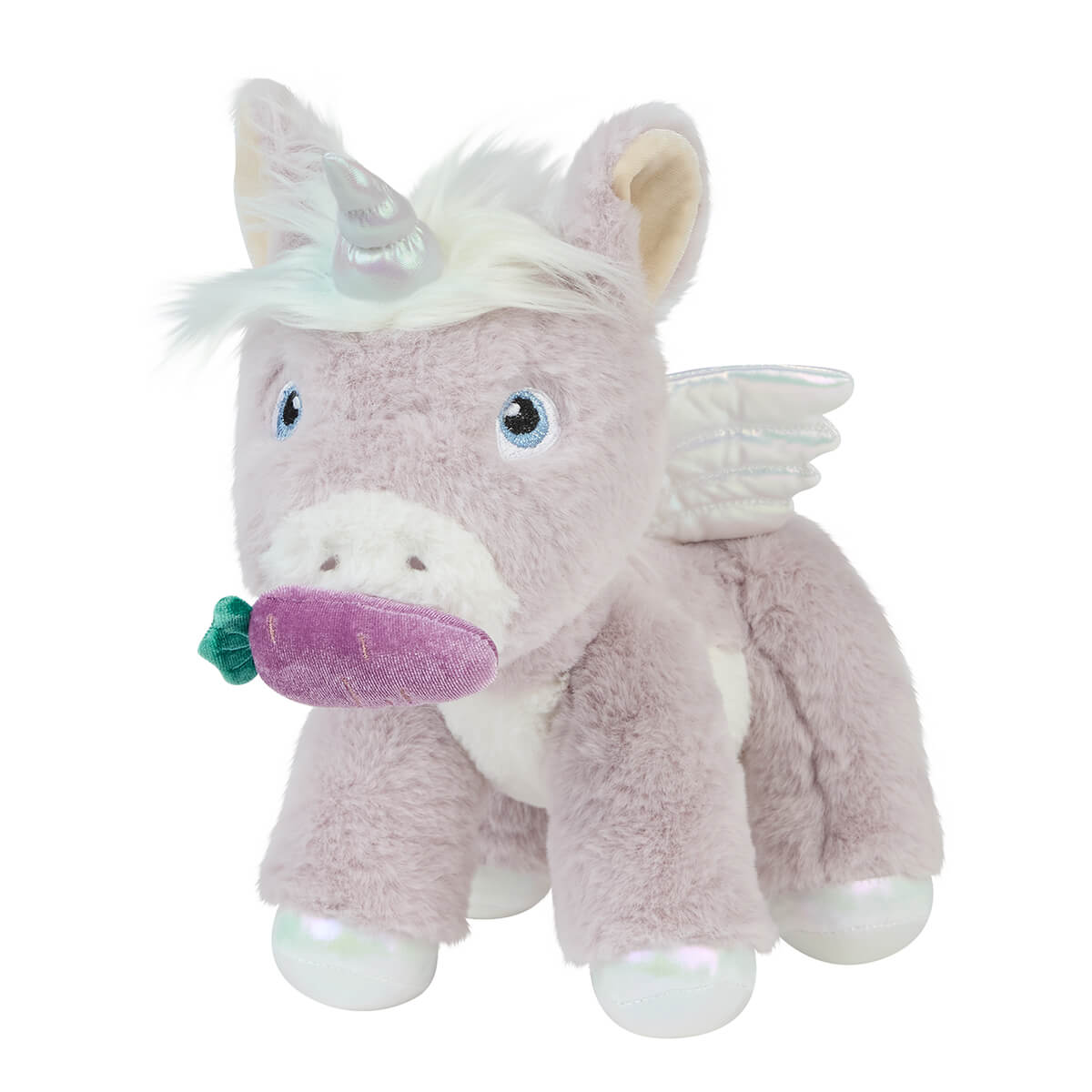 Crafted from the softest fabric, Glimmer is as cuddly as a cloud, and ready to make dreams come true! The magnetic mouth can hold their velvet carrot or carry their baby unicorn sidekick, making every play session a bit more enchanting.