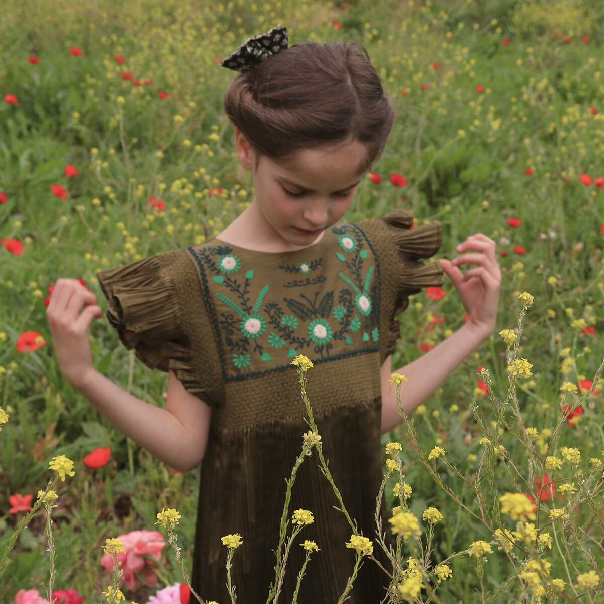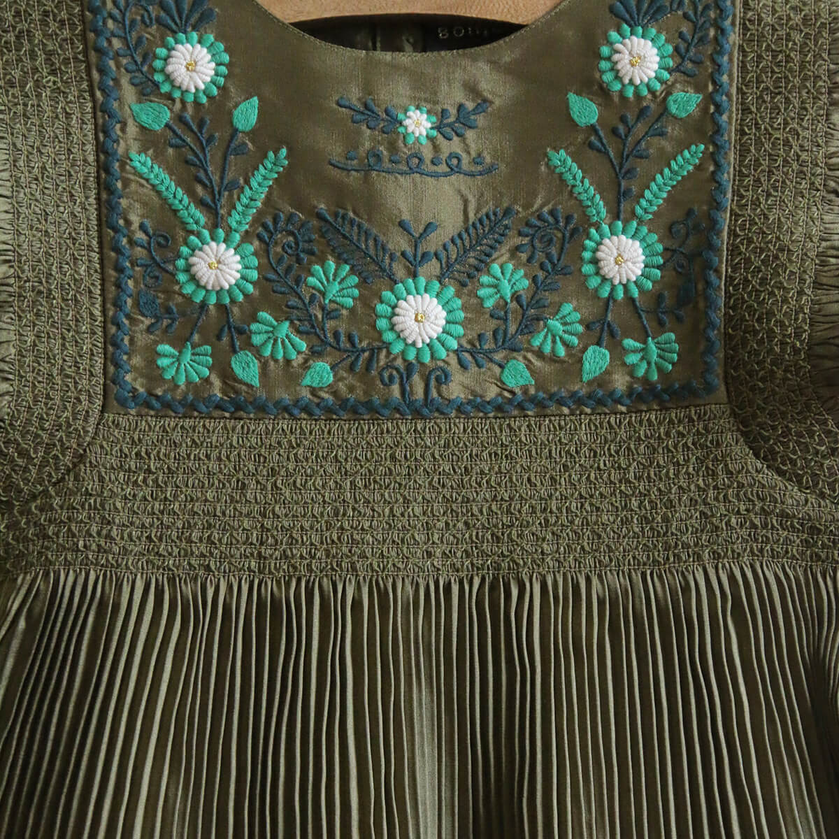 Dress in Pleated Khaki Taffeta by Bonjour