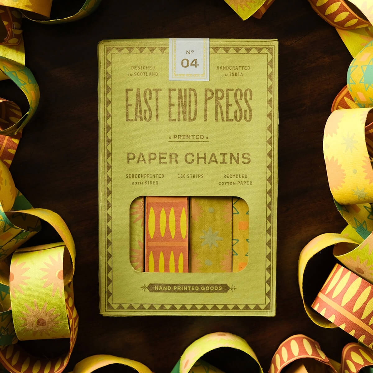 All paper products made by East End Press are hand printed or hand painted by fairtrade SEDEX certified printers in Jaipur, using recycled paper and non toxic water based inks.