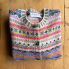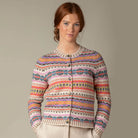 Kinross Cardigan by Eribé. The epitome of comfort and style the Kinross cardigan features horn buttons and classic striped patterns on the hem and cuff. This cardigan effortlessly combines warmth with a touch of tradition. The shape and sizing is regular.