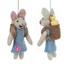 Martha The Bunny hanging decoration by Felt So Good. Martha Bunny is wearing her brown felted backpack, where her little yellow chick is hanging out, ready for a day of exploring together. She has been hand needle-felted by skilled artisans in Nepal under Fairtrade working conditions. This lovely hand-felted decoration is perfect for hanging on your Easter tree, as part of an Easter Egg hunt or for decorating the home in Spring.