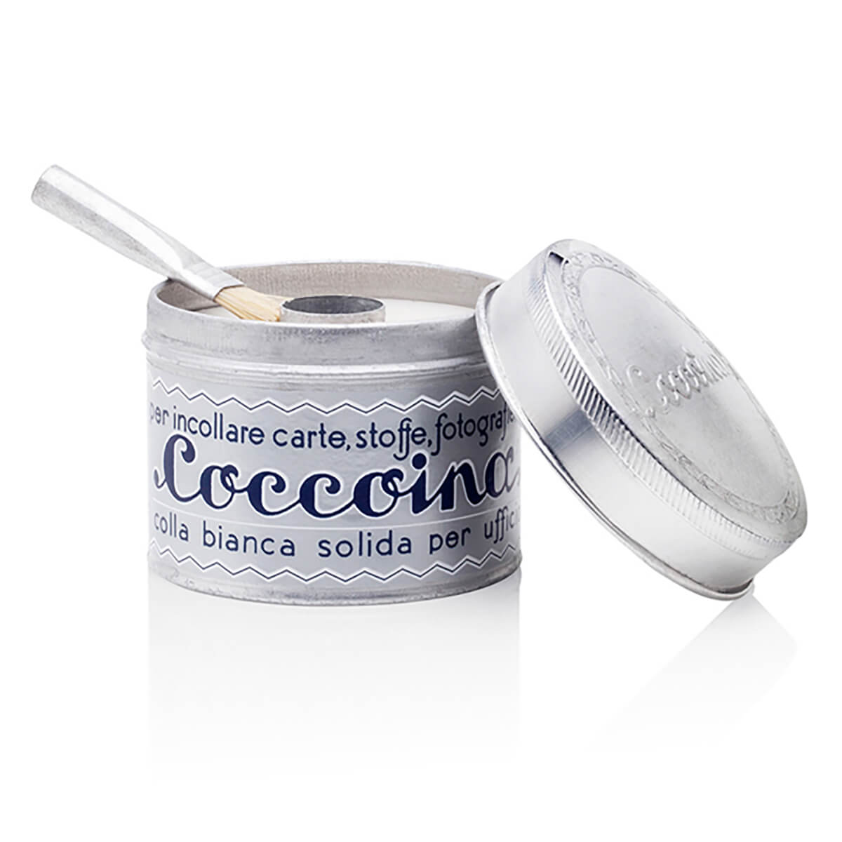 Almond scented adhesive paste by Coccoina. Coccoina glue is a high-quality adhesive that combines excellent bonding strength with traditional charm. Solvent-free paste made from natural potato starch with a distinctive almond scent. Packaged in a aluminium tin and paired with a convenient brush for easy application, this adhesive is perfect for all types of creative projects.