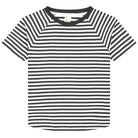 Crewneck tee by Gray Label. This short-sleeved raglan T-shirt has a slightly curved hem and is made from a soft organic cotton fabric in a classic stripe. The Gray Label logo is stitched on the side of the arm, just below the shoulder.