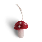 Set of five forest mushroom hanging decorations in red by Gry & Sif. Beautiful soft felted Christmas decorations in a Scandinavian style. Handmade and truly unique. Suitable for all your Winter festivities, whether it be hanging from the Christmas tree, dangling from foraged branches in Autumn or displayed in your window for a hygge Danish Winter display.
