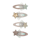 5cm soft pink grosgrain ribbon wrapped clic clac clips with metallic and glitter padded fabric stars layered over gold glitter speckled tulle.