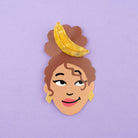 Banana hair clip by Coucou Suzette. A little banana hair clip with engraved gold ink details. The material is a nice iridescent cellulose acetate that gives endless shades and highlights to this little jewel accessory. Made from plant-based eco-friendly cellulose acetate set onto a gold-tone alligator clip.
