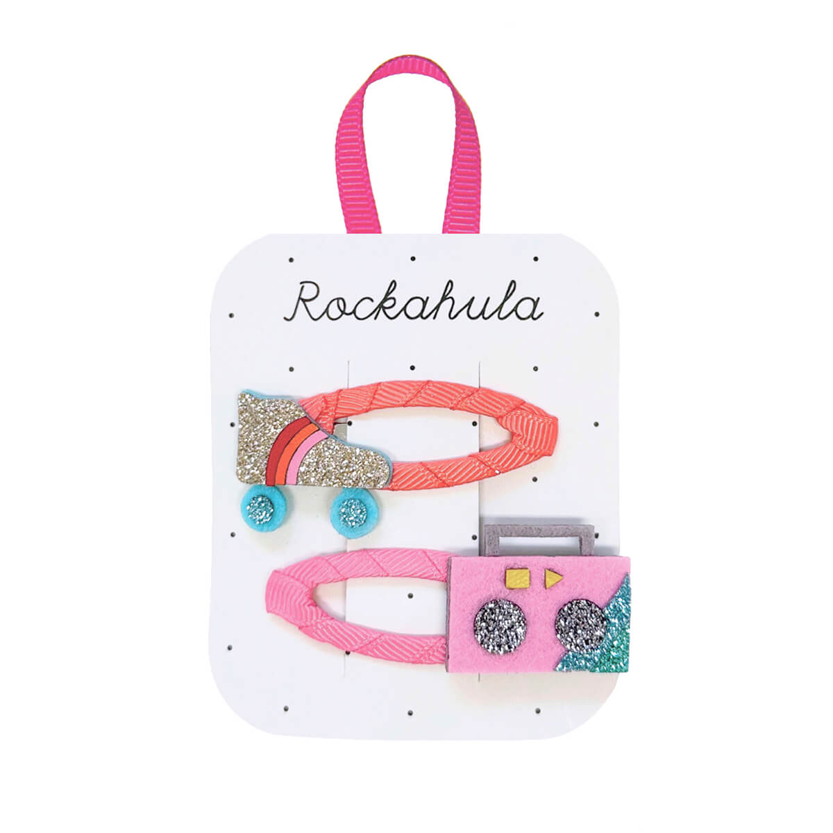 Roller Disco Hair Clips by Rockahula Kids. Take these super bright roller boots out for a spin with our funky boombox! Designed in super bright colours, these are the perfect accessory for any fun day out!