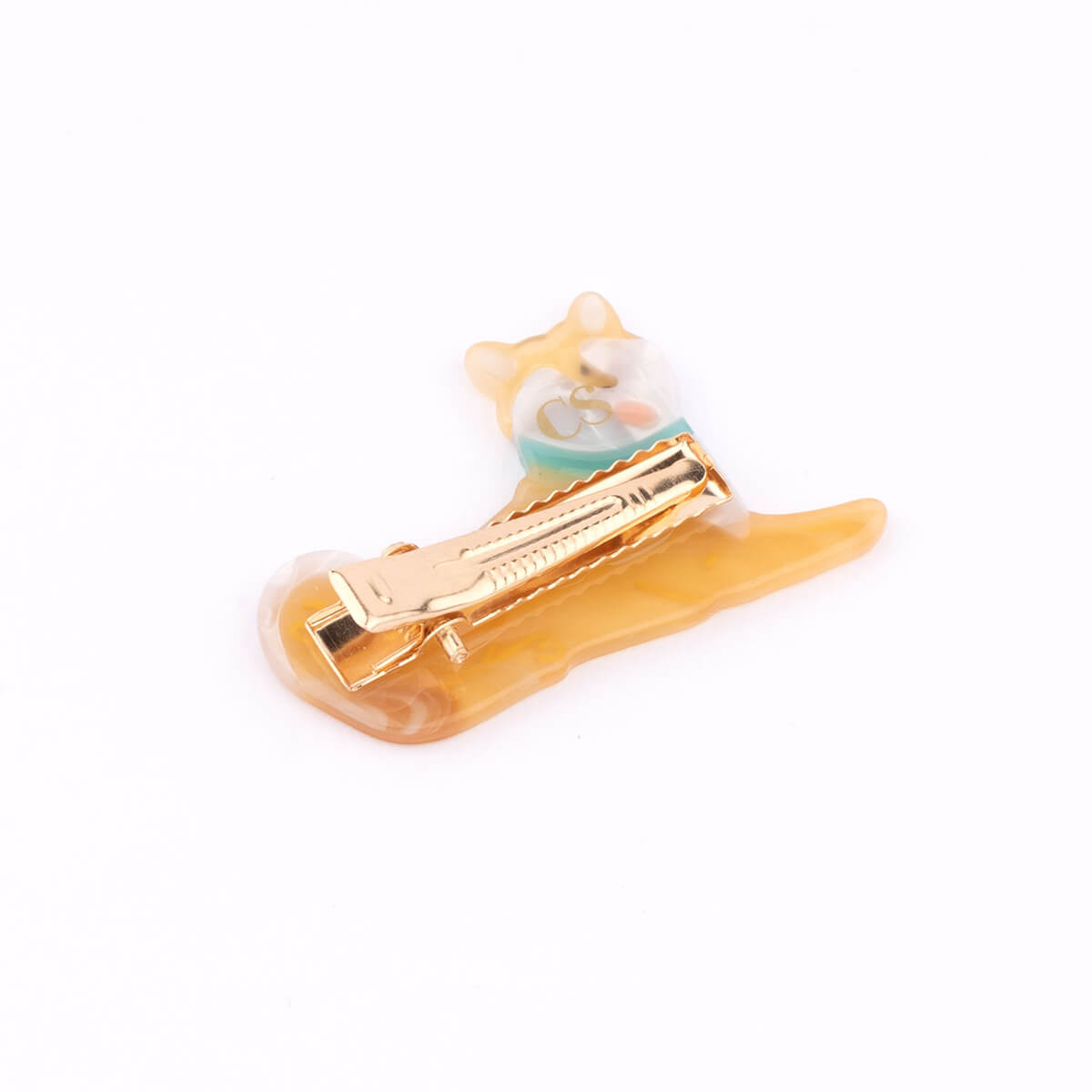 Shiba hair clip by Coucou Suzette. A hair clip in the shape of a super cute Shiba Inu dog. This dog looks super pleased with itself and will take great care of tidying up our rebellious hair, with its serrated clip that won't let any strands escape. Made from plant-based eco-friendly cellulose acetate set onto a gold-tone crocodile clip.