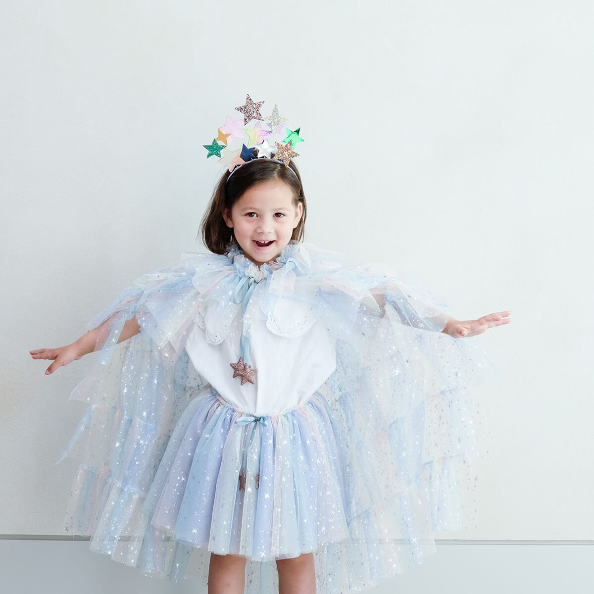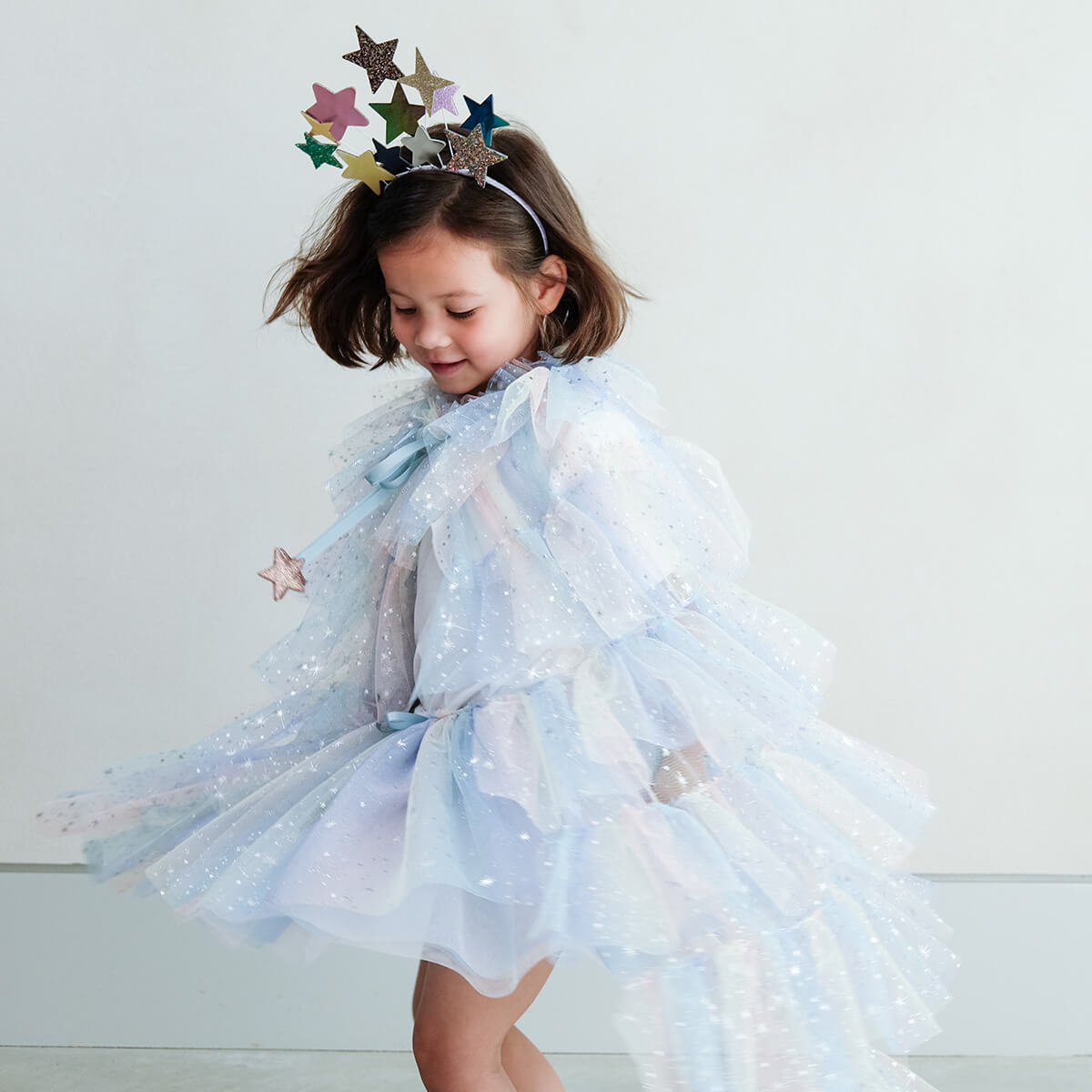 Celestial Rainbow Tutu by Mimi & Lula. They'll be twirling out of this world with our celestial rainbow tutu! Perfect for parties, everyday fun, or just dreamy dress up days! Wear with our celestial rainbow cape for a truly dazzling rainbow look!