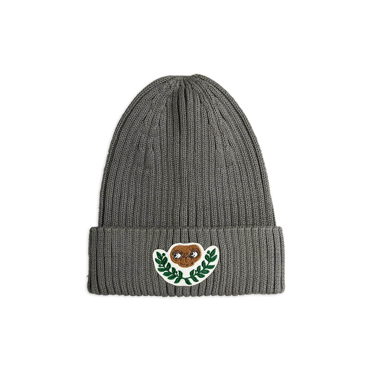 E.T. Patch Knitted Rib Beanie in Grey by Mini Rodini