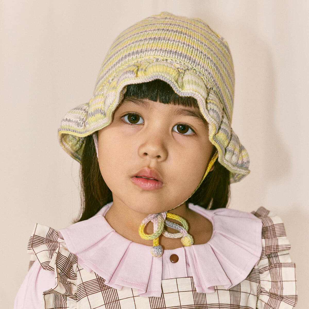 Starling Sunhat Hat by Misha & Puff. A hand-knit hat in Pima cotton, featuring a brim with eyelet stitch detail and popcorn tie closure at the chin.