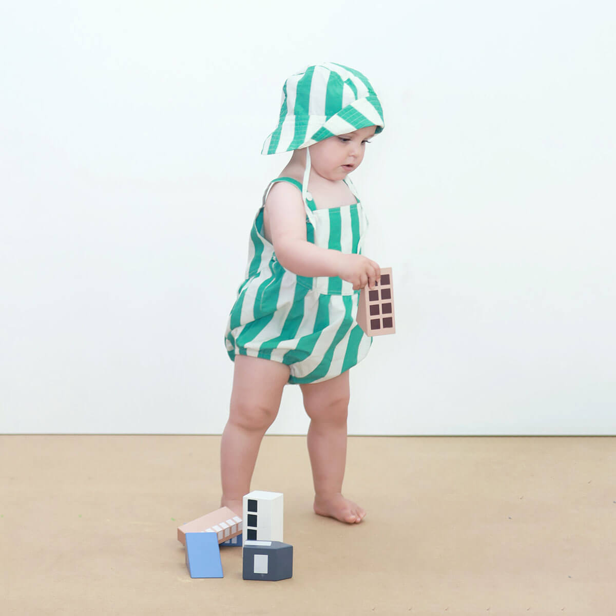 Stripes Bucket Hat in Emerald by Tinycottons