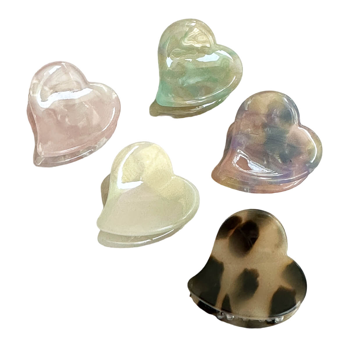 Heart mini hair claw by Hello Sakura. Full acetate pretty little heart hair claws in a pearly finish. Made from plant-based eco-friendly cellulose acetate.
