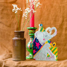 Party Elephant Die Cut Birthday Greetings Card by Hutch Cassidy. Brimming with fun is the ultimate party elephant, this adorable paper treasure is here to spread some magic to the special people in your world. Appealing to all ages, this whimsical card is sure to enchant. These cards make wonderful keepsakes and paper ornaments and are guaranteed to provide joy and magic to loved ones.