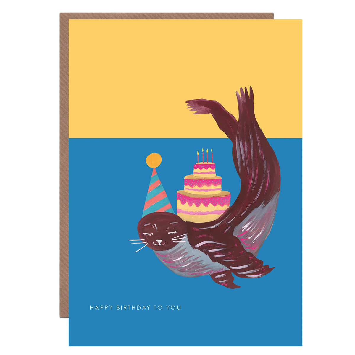 Sea Lion & Cake Birthday Greetings Card by Hutch Cassidy