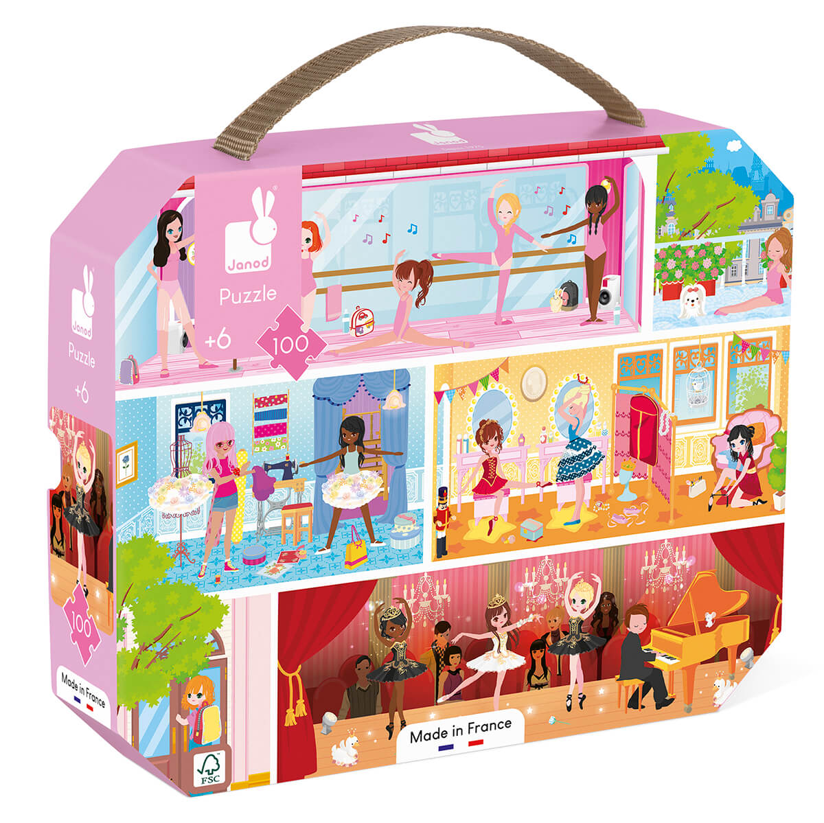 Dance academy puzzle by Janod. Welcome to the dance academy. This 100 piece jigsaw puzzle is perfect for any budding dancer. Comes in a handy portable case.