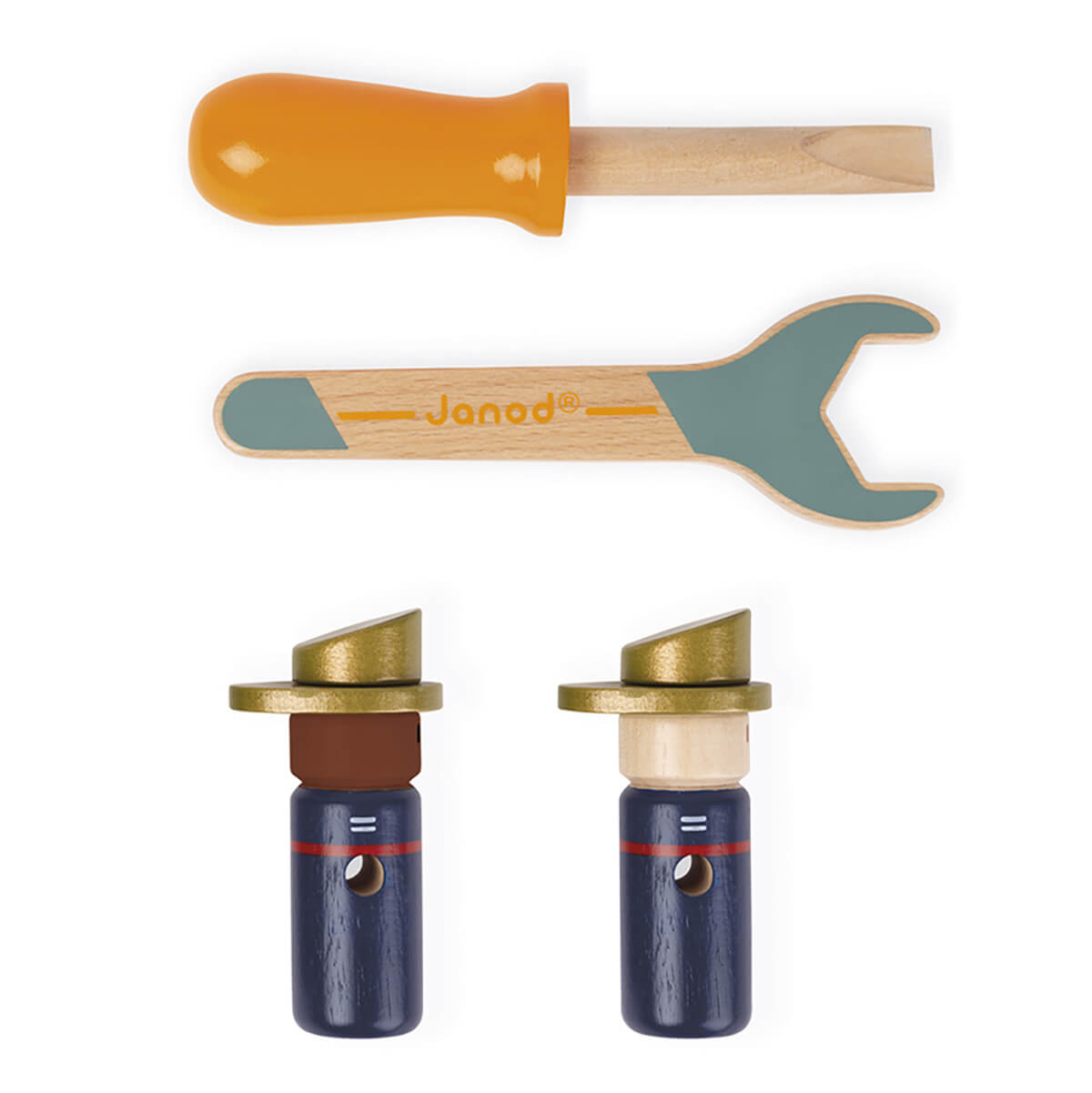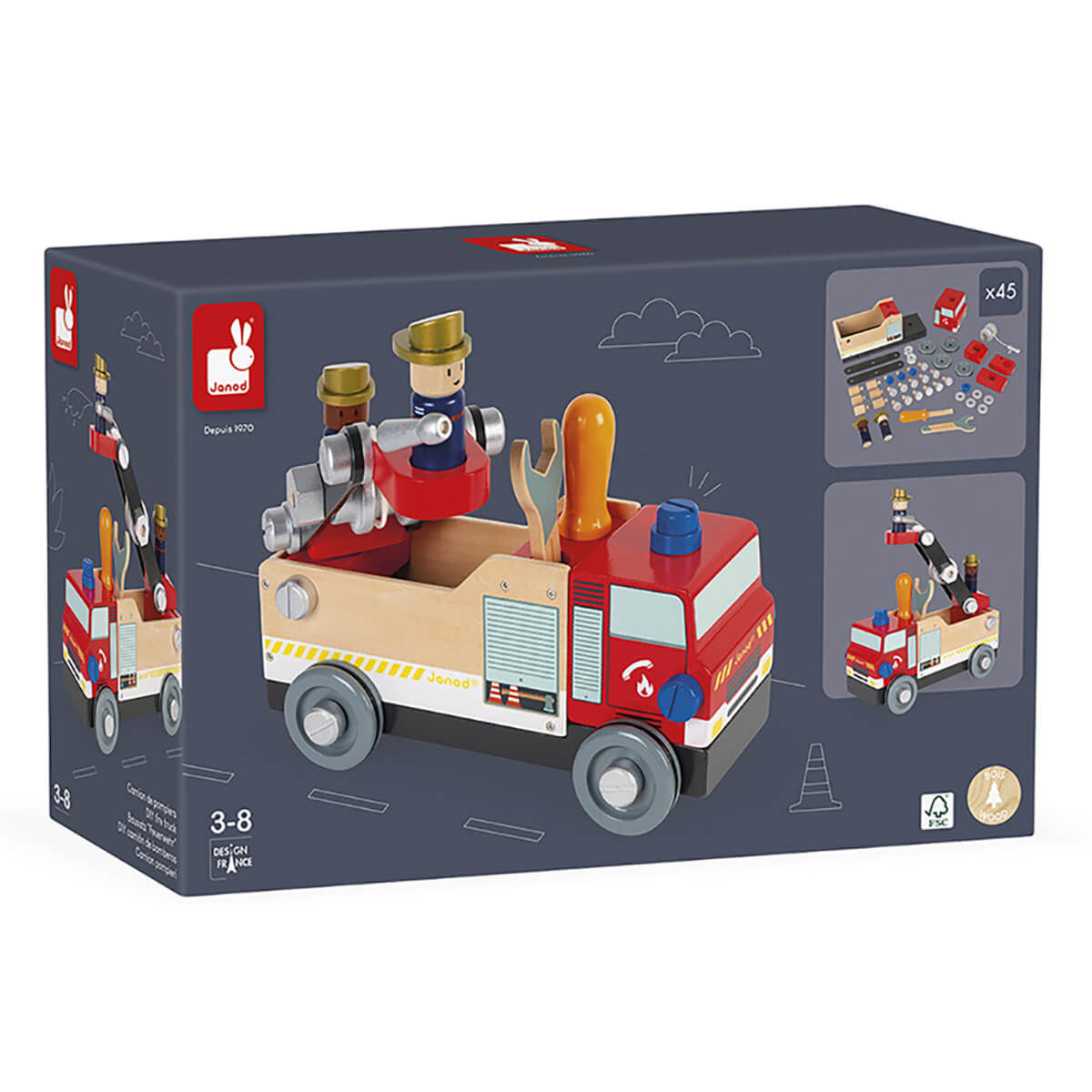 DIY Fire Truck by Janod. If the sound of sirens regularly resounds round your home, your little ones will love this attractive, build-it-yourself fire engine. Ideal for children from 3 to 8 years old, this 2-in-1 wooden toy will delight DIY enthusiasts and budding firefighters alike. This set starts as a construction kit, as kids try to put the beautiful fire engine together using the nuts, bolts and screws provided. Once the vehicle is assembled, it’s time for them to switch on their imaginations and send their new fire engine out on all sorts of adventures. This 45-piece set includes 2 tools, 2 firefighters and assembly instructions.