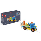 DIY Truck by Janod. This colourful wooden construction truck is a 2-in-1 toy that is both a construction set and a truck that can be driven around.