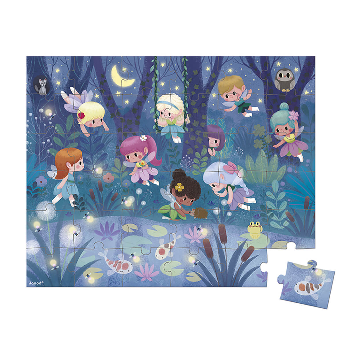 Fairies and waterlilies puzzle by Janod. A magical 36 piece puzzle for all fairy lovers. Comes in a handy portable carry case.