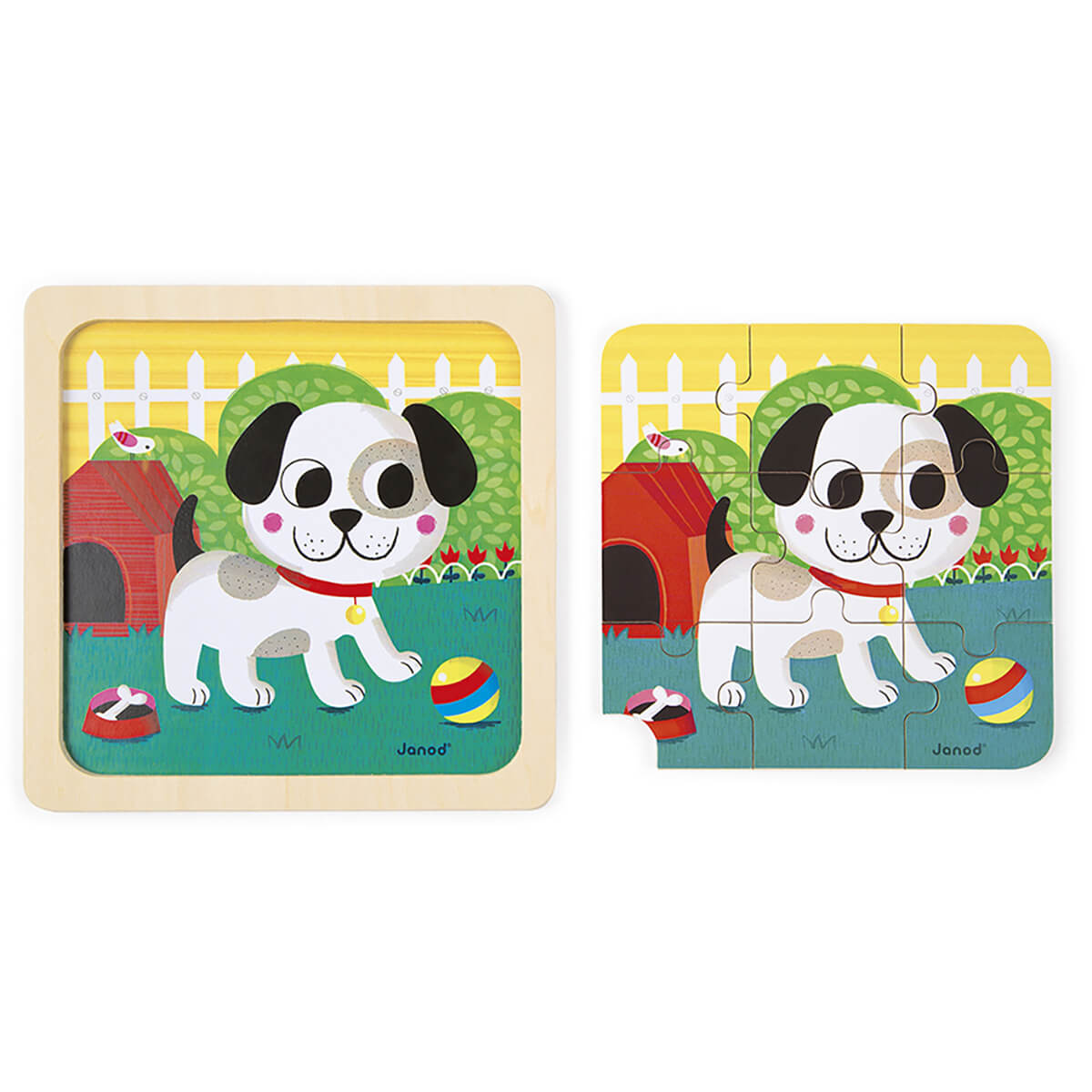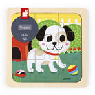 Titus The Dog Puzzle by Janod. 9 piece wooden puzzle with chunky pieces for little hands.