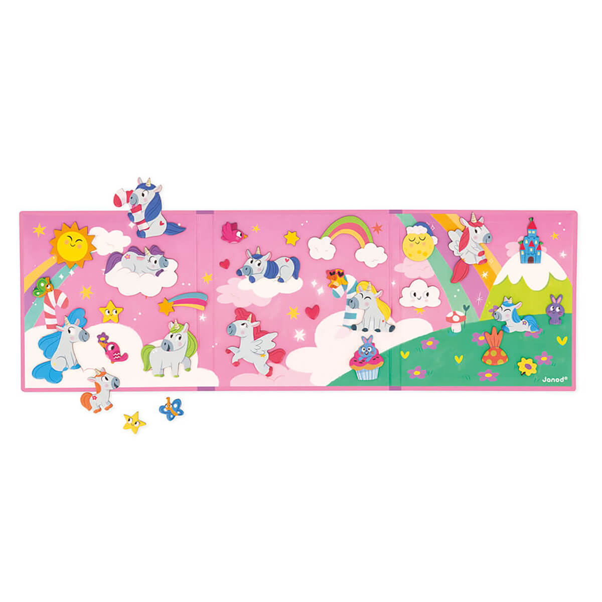 Unicorn magneti stories by Janod. Fun on the farm with this magnetic story telling board. A fold out board with magnetic farm themed pieces to create imaginative stories at home or on go.