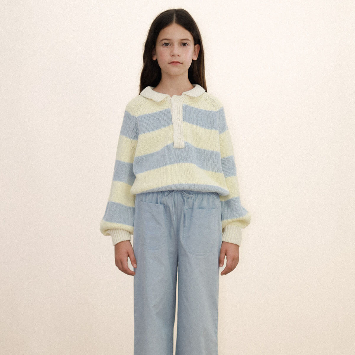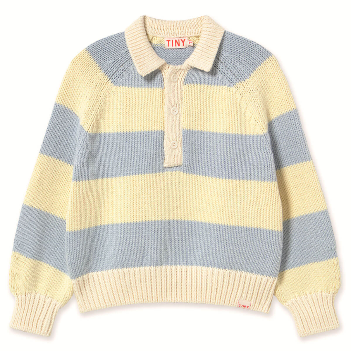 Stripes Sweater by Tinycottons. Add a touch of style and comfort to your wardrobe with this striped knit jumper, crafted from soft 100% cotton. It features a polo style collar with a buttoned opening and a relaxed silhouette, perfect for layering or wearing on its own. The gentle fabric ensures all day comfort, blending warmth and effortless style.