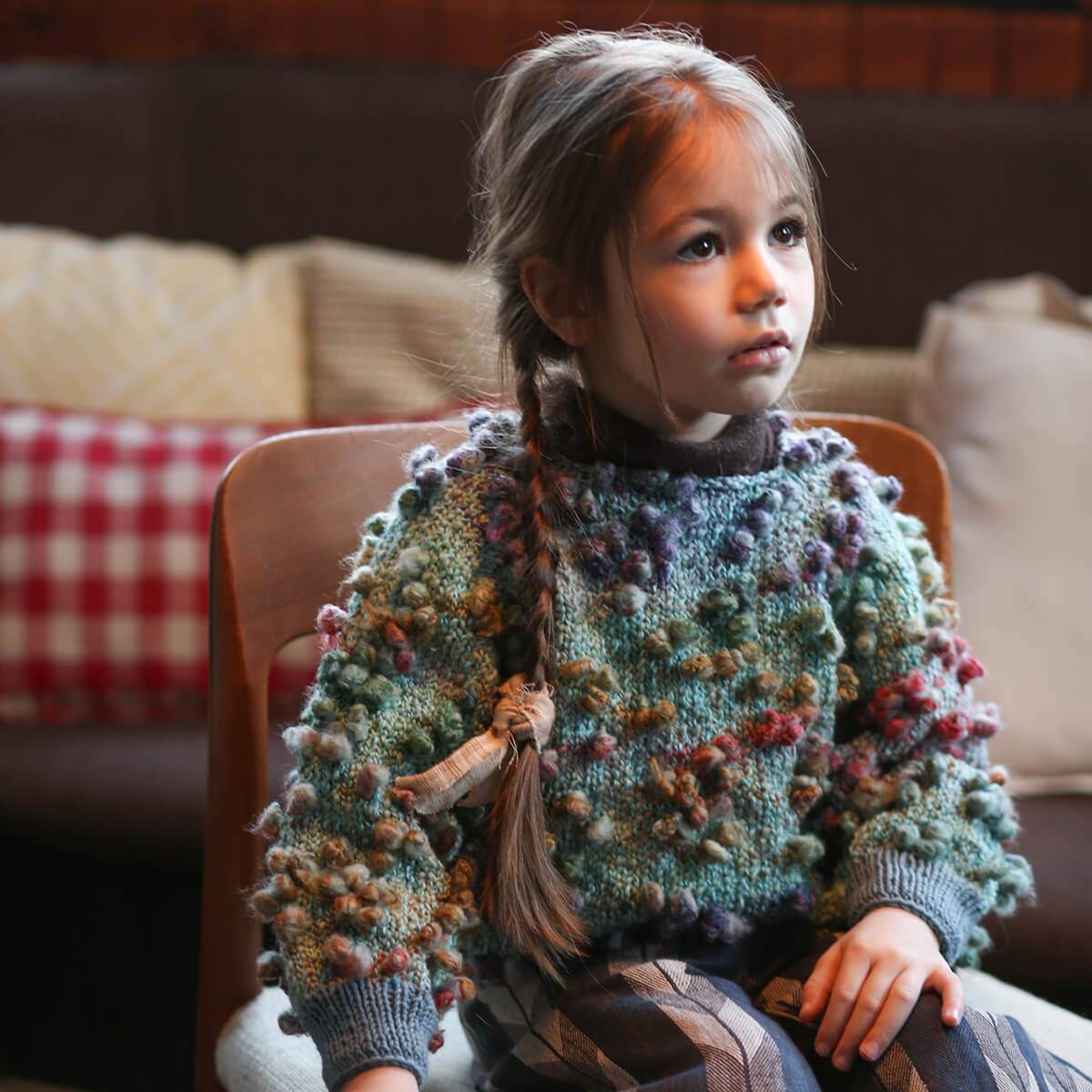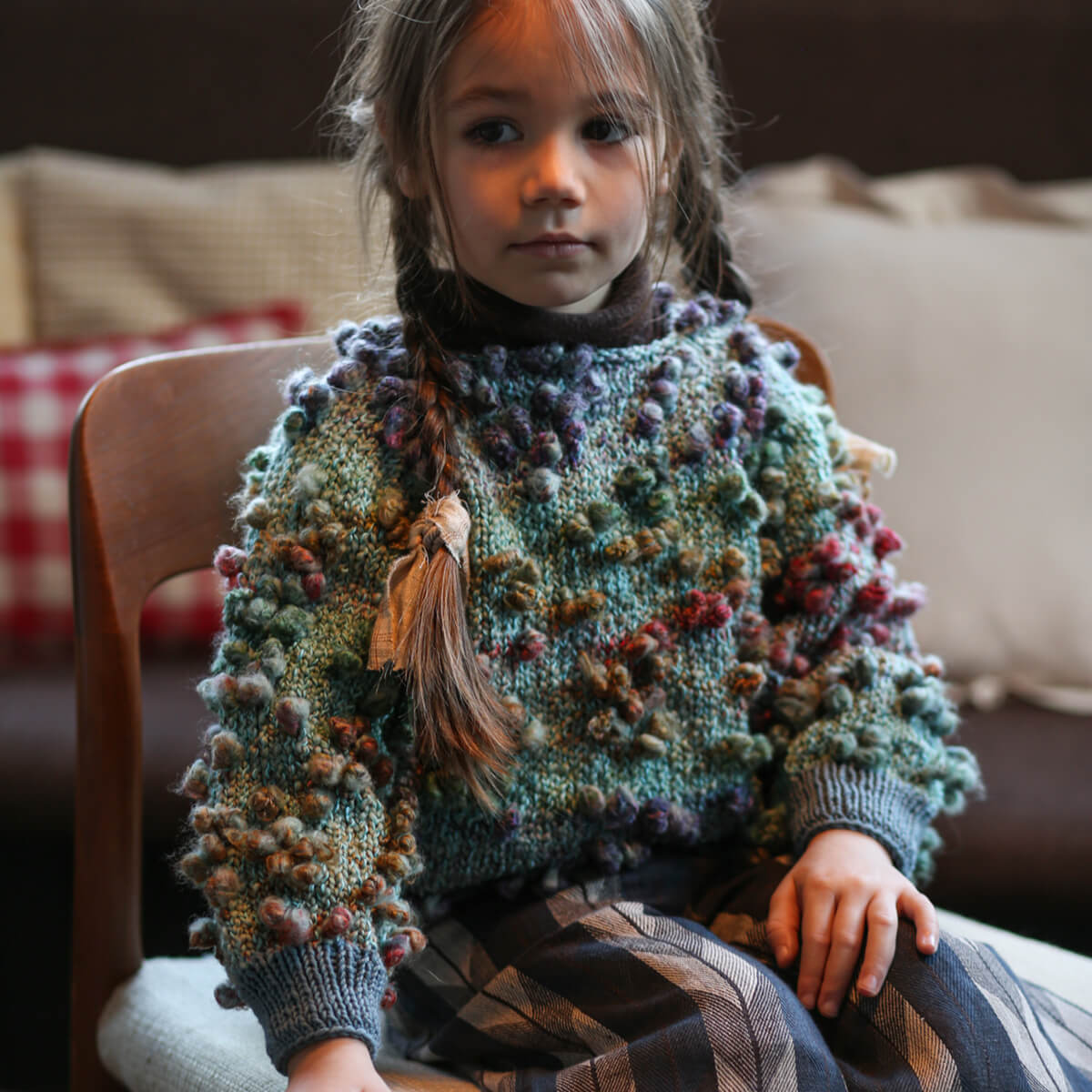 Noor Sweater by Kalinka. Statement long sleeve jumper with a playful multicolour texture.
