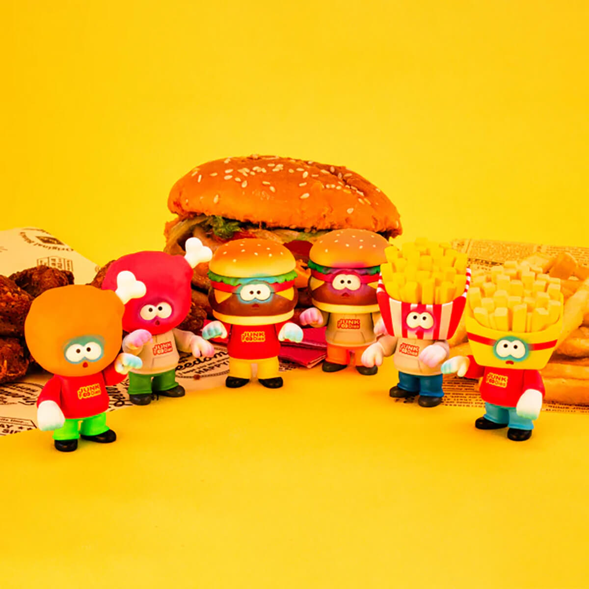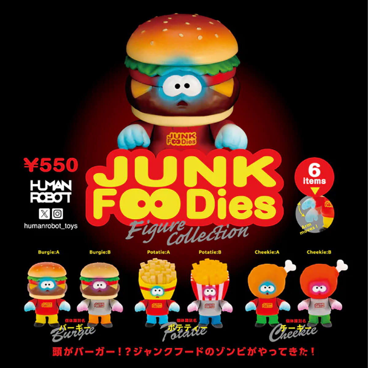 There are six different Junk Foodies figures in this Gachapon series: Burgie A, Burgie B, Potatie A, Potatie B, Cheekie A and Cheekie B.