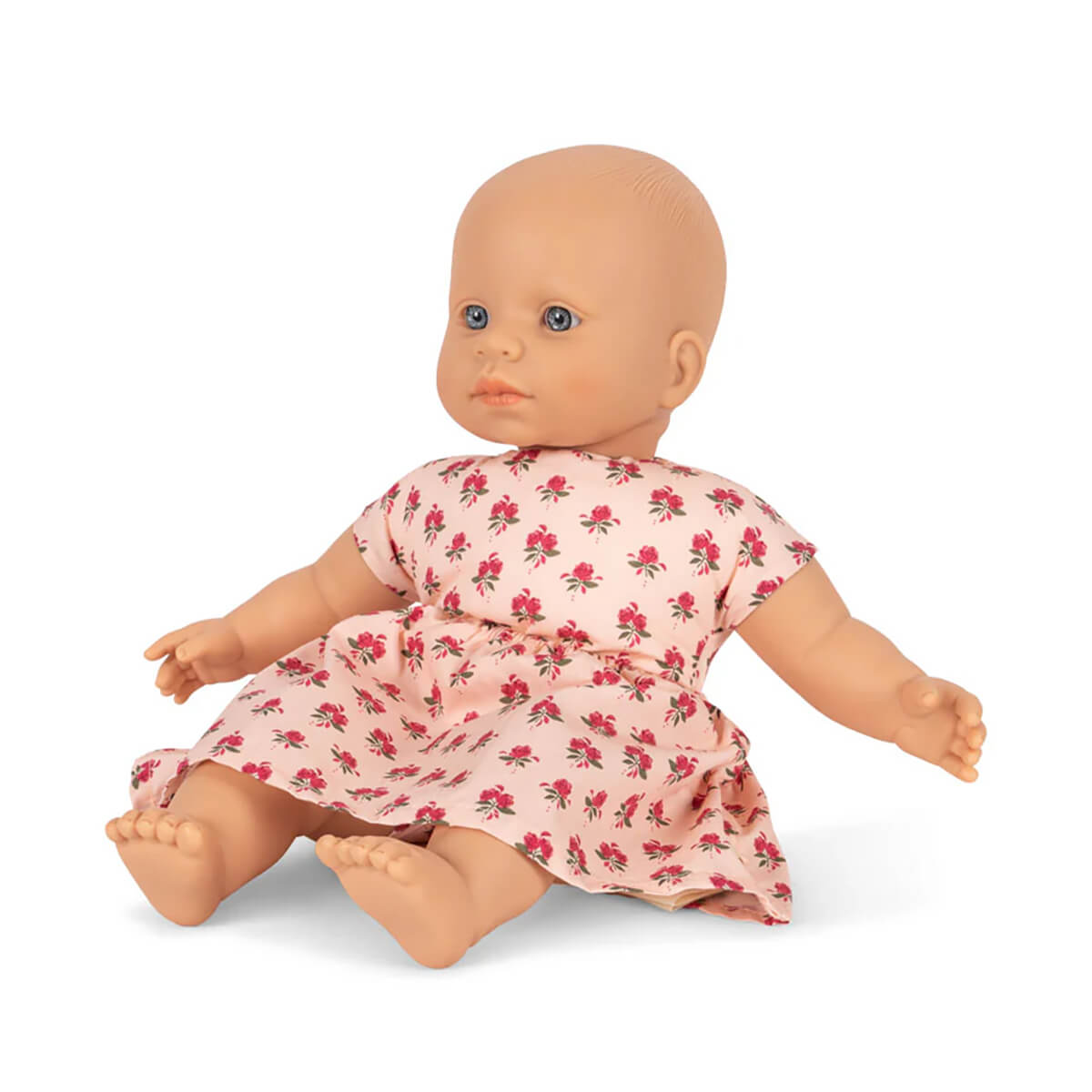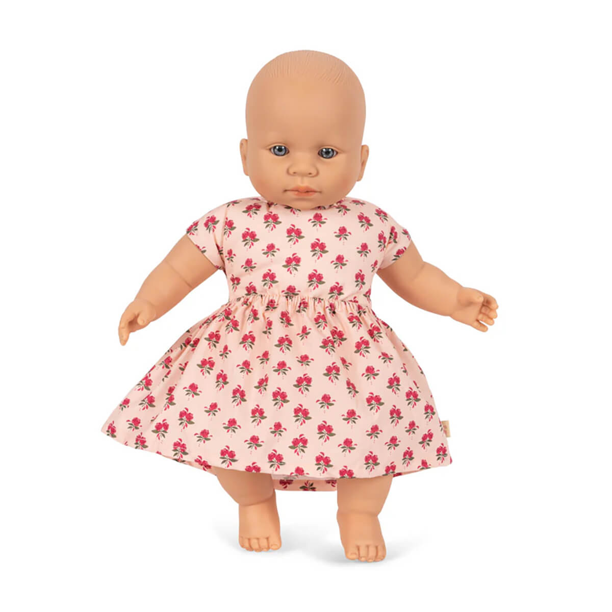 Kallis Doll by Konges Sløjd. Meet Kallis: A soft and sweet doll that will be your new best friend. Kallis is dressed in a soft cotton dress. Her eyes are lifelike with depth, making her a sweet and comforting companion for little ones. Ideal for pretend play.