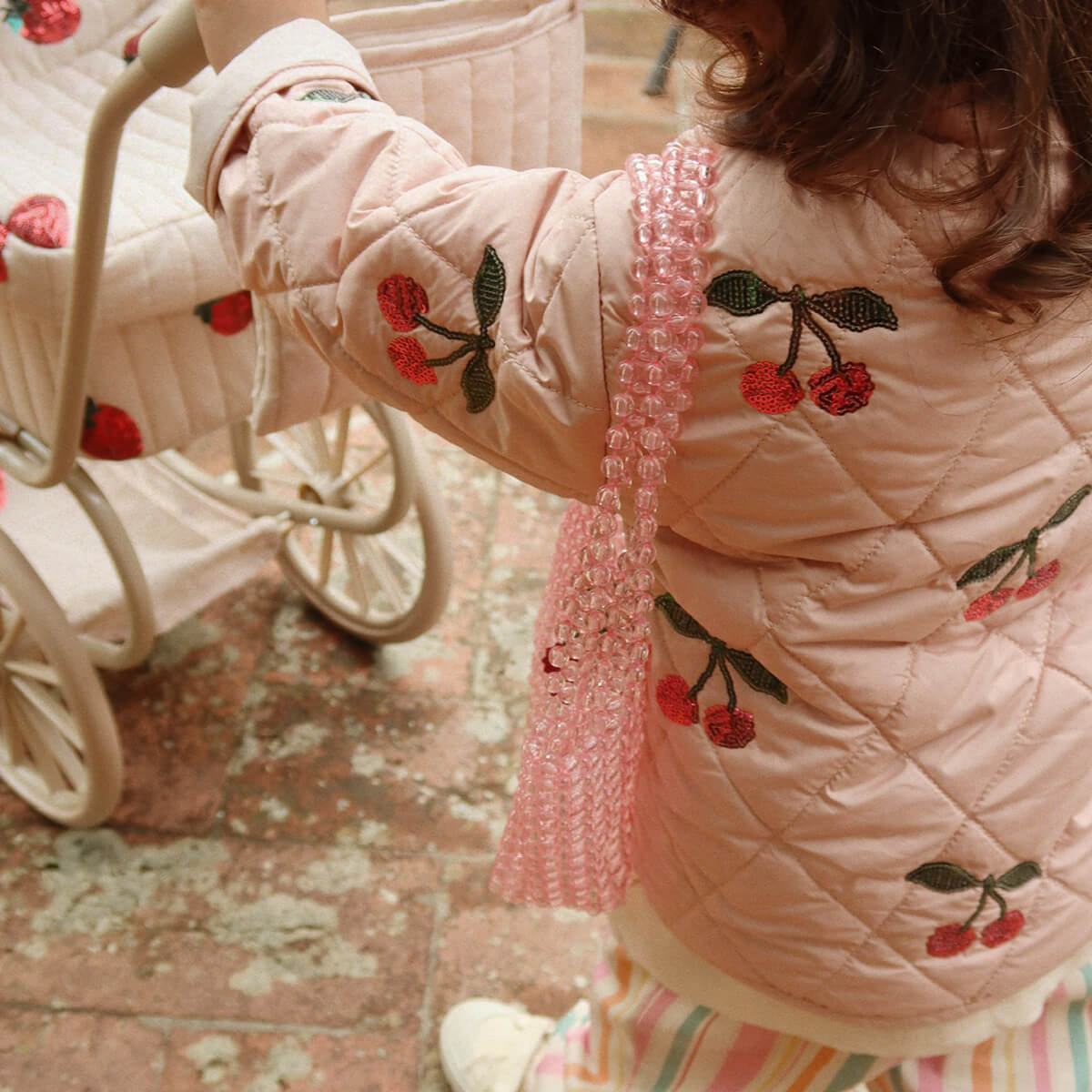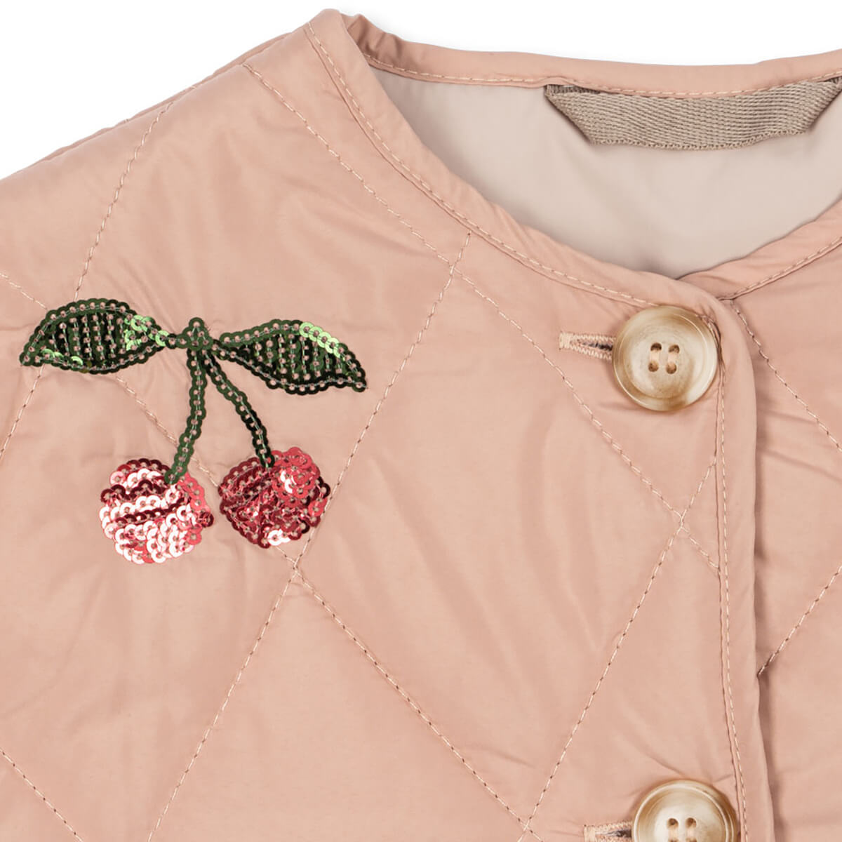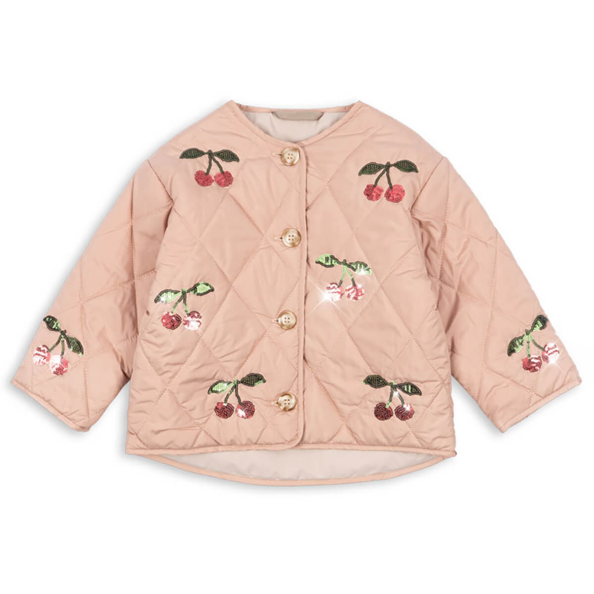 Flora Sequin Jacket by Konges Sløjd. Lightly padded quilt jacket with decorative sequins. Designed in a casual silhouette that is meant to fit a bit loose, with a classic round neck and slim cuffs as the cute finishing touches.