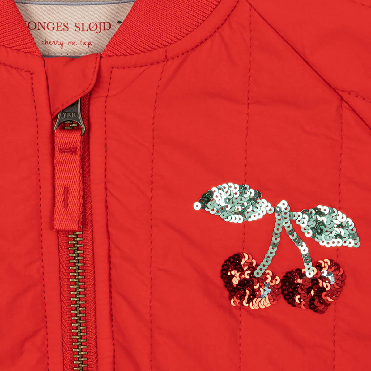 Juno Sequin Bomber Jacket by Konges Sløjd. Juno is a lightweight thermo jacket with warm polyester padding for effective insulation, and a breathable, fluorine-free impregnation that makes it both wind-resistant and water-repellent. A forever favourite and a classic in the Konges Sløjd outerwear collection.