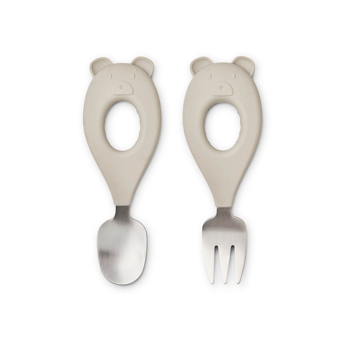 Stanley baby cutlery by Liewood. Cute and durable fork and spoon set for babies. The easy to grab handles encourage self feeding.