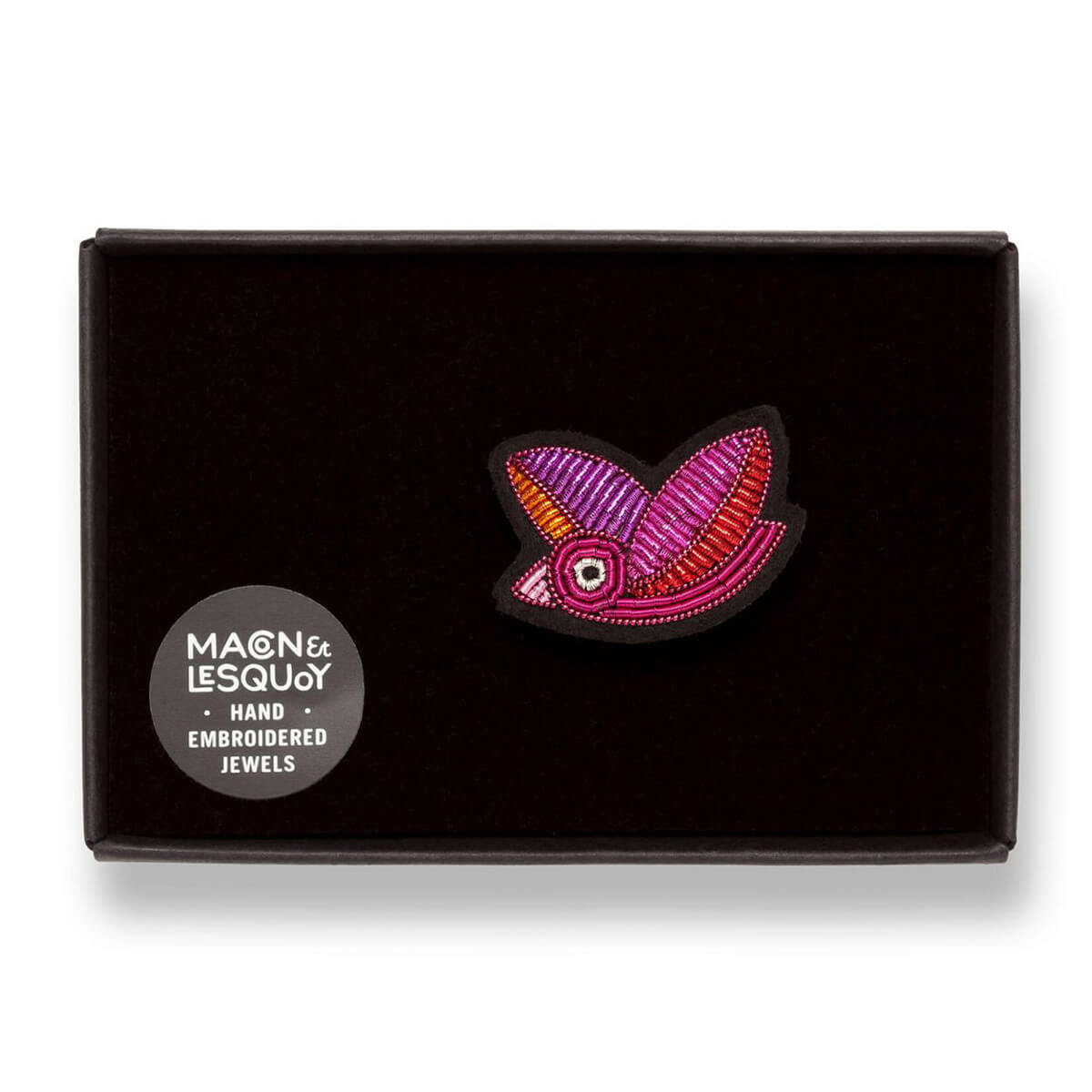 Piou-Piou Hand Embroidered Brooch by Macon & Lesquoy. The perfect pink brooch for all bird lovers. Pin to your jacket, bag or favourite top.